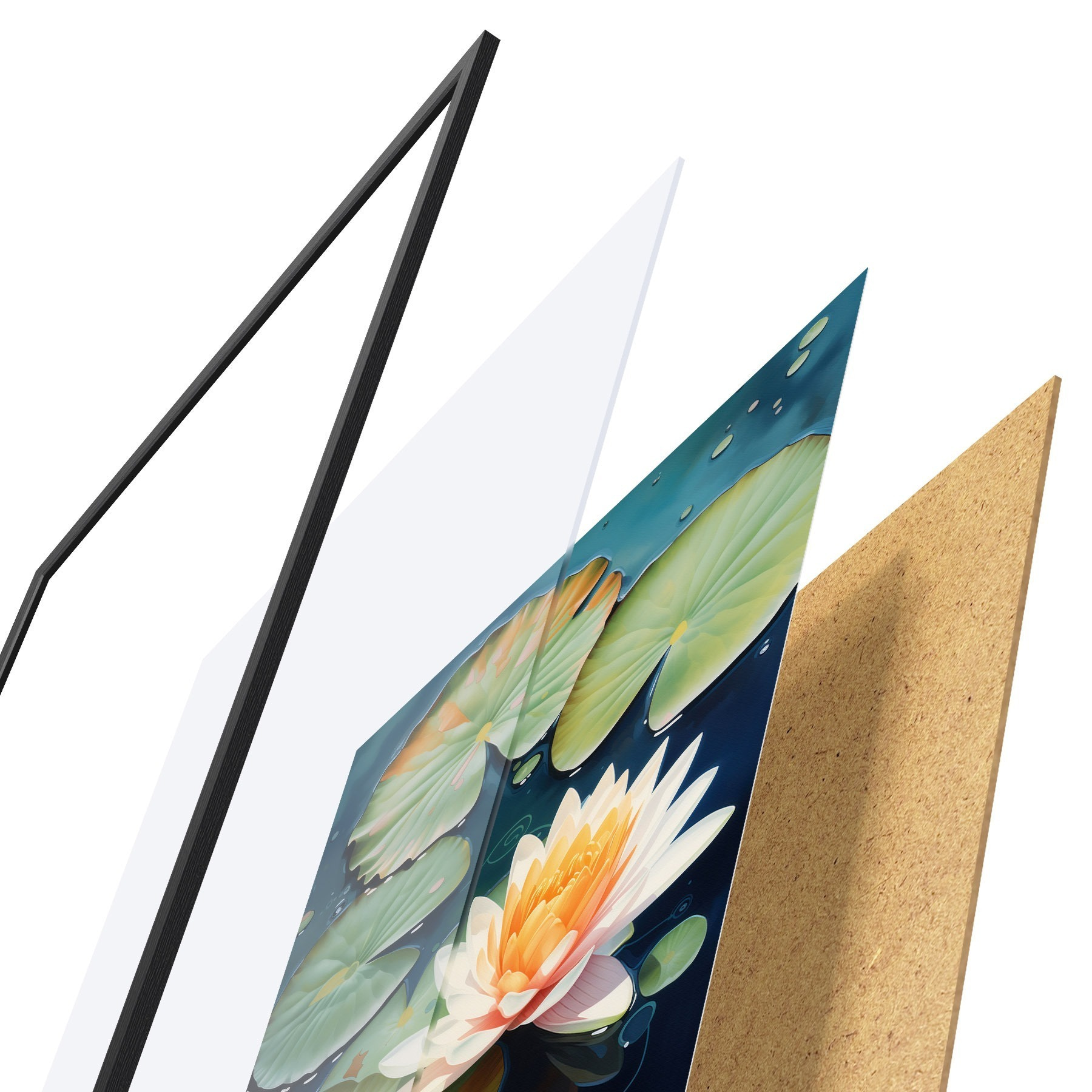 Plakat składa się z ramy, pleksi, wydrukowanego obrazu i podkładu z płyty wiórowej. Plakat można natychmiast zawiesić na ścianie dzięki uchwytom z tyłu.