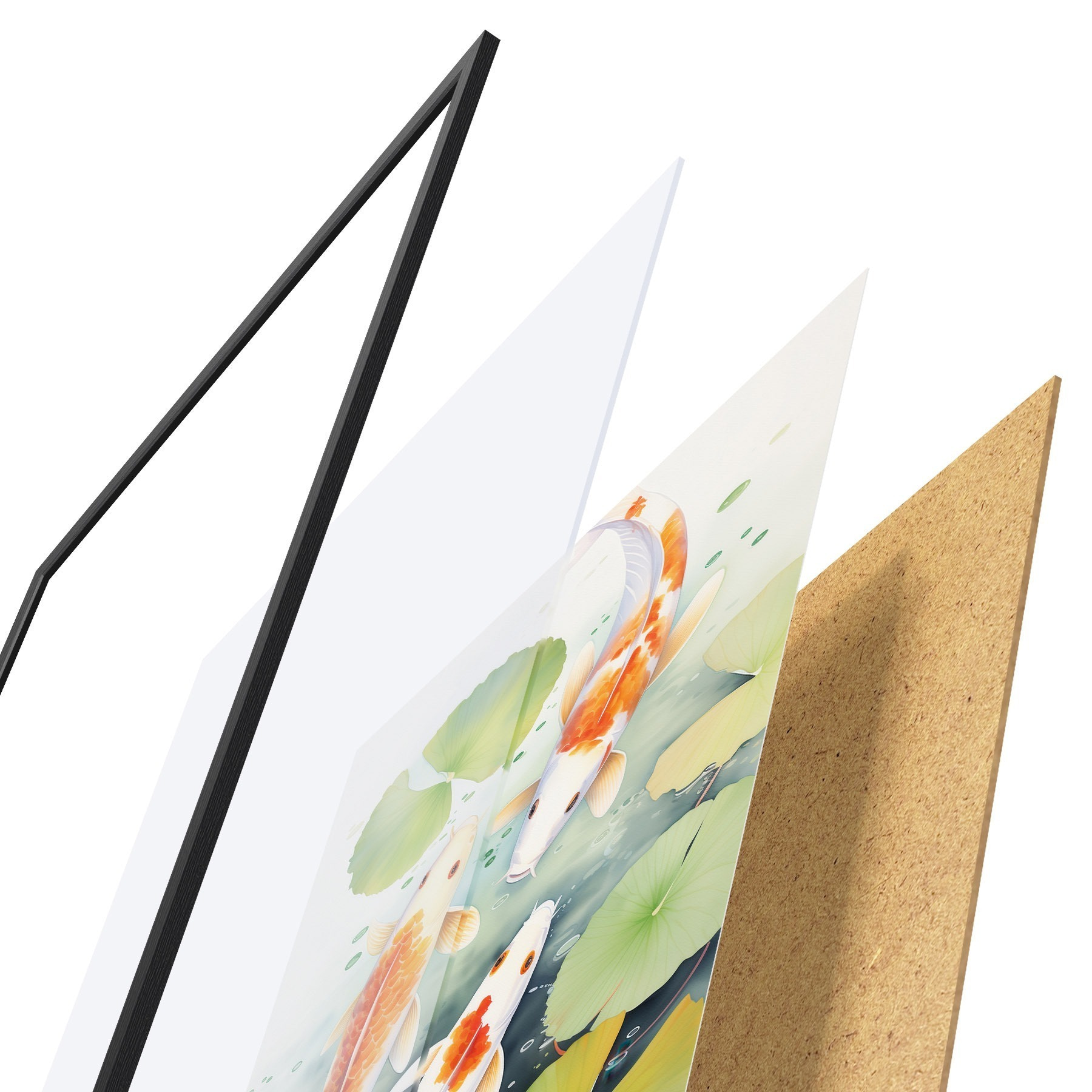 Plakat składa się z ramy, pleksi, wydrukowanego obrazu i podkładu z płyty wiórowej. Plakat można natychmiast zawiesić na ścianie dzięki uchwytom z tyłu.