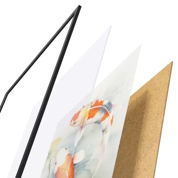 Plakat składa się z ramy, pleksi, wydrukowanego obrazu i podkładu z płyty wiórowej. Plakat można natychmiast zawiesić na ścianie dzięki uchwytom z tyłu.