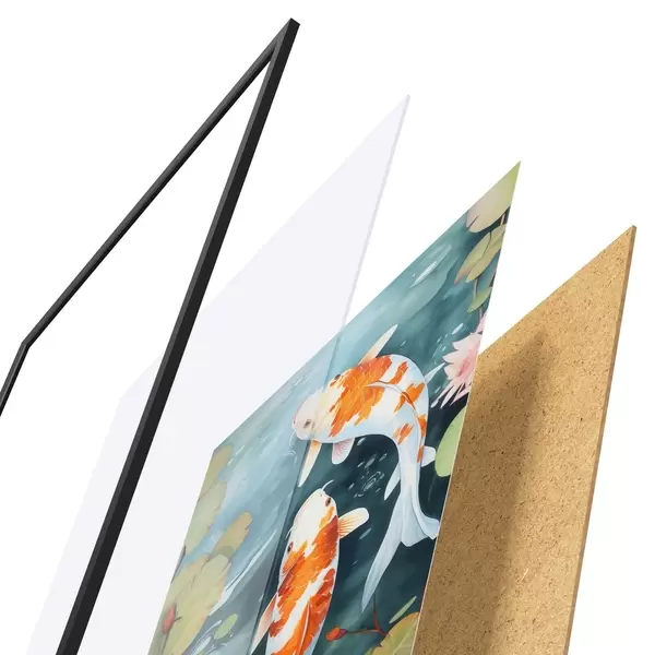 Plakat składa się z ramy, pleksi, wydrukowanego obrazu i podkładu z płyty wiórowej. Plakat można natychmiast zawiesić na ścianie dzięki uchwytom z tyłu.