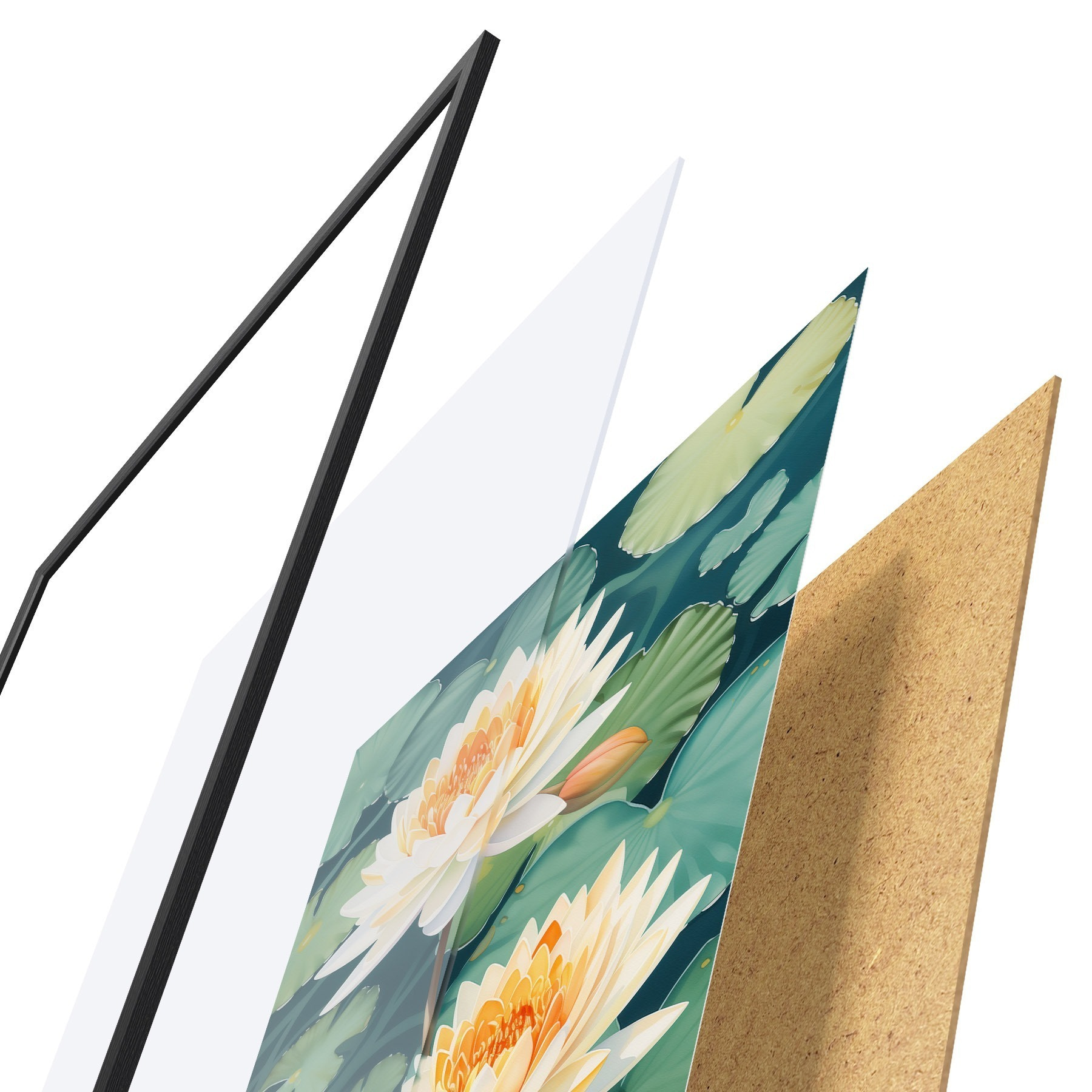 Plakat składa się z ramy, pleksi, wydrukowanego obrazu i podkładu z płyty wiórowej. Plakat można natychmiast zawiesić na ścianie dzięki uchwytom z tyłu.