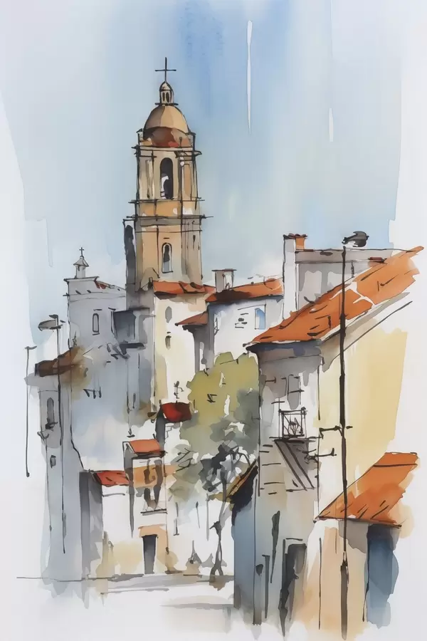 Poster Akwarela imitująca pejzaż miejski Nr f46120
