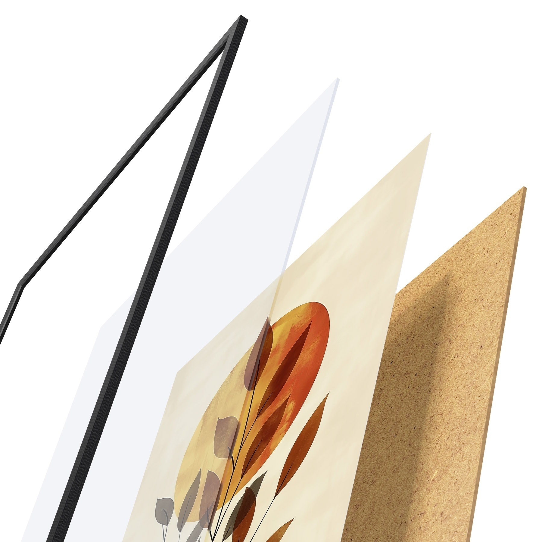 Plakat składa się z ramy, pleksi, wydrukowanego obrazu i podkładu z płyty wiórowej. Plakat można natychmiast zawiesić na ścianie dzięki uchwytom z tyłu.