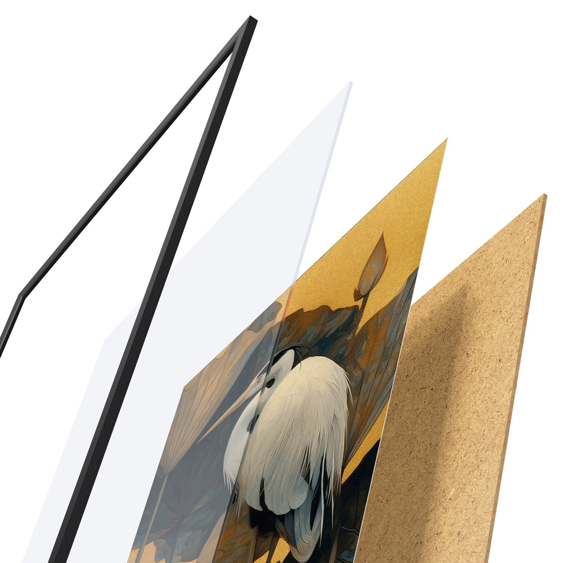 Plakat składa się z ramy, pleksi, wydrukowanego obrazu i podkładu z płyty wiórowej. Plakat można natychmiast zawiesić na ścianie dzięki uchwytom z tyłu.