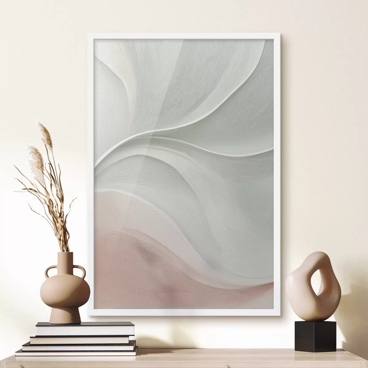 Plakat Abstrakcyjne fale w ciepłych odcieniach różowo-beżowych f46152
