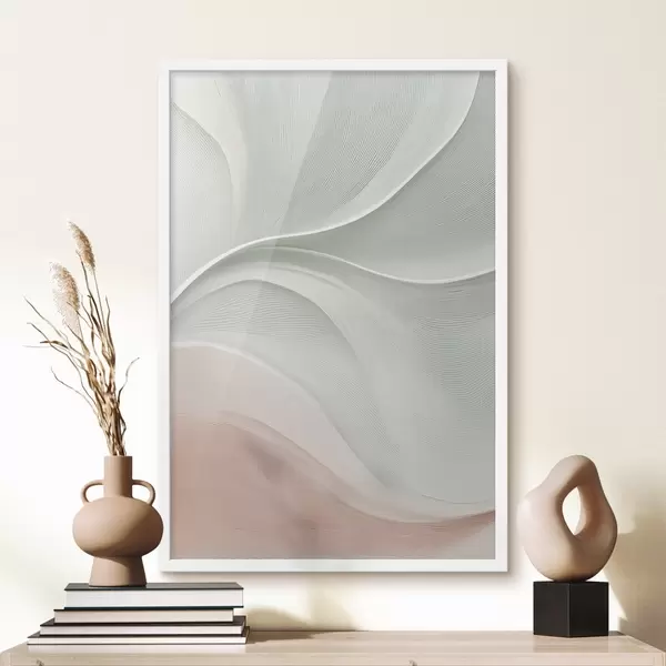 Poster Abstrakcyjne fale w ciepłych odcieniach różowo-beżowych Nr f46152
