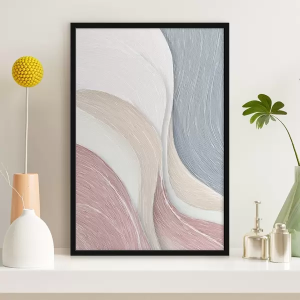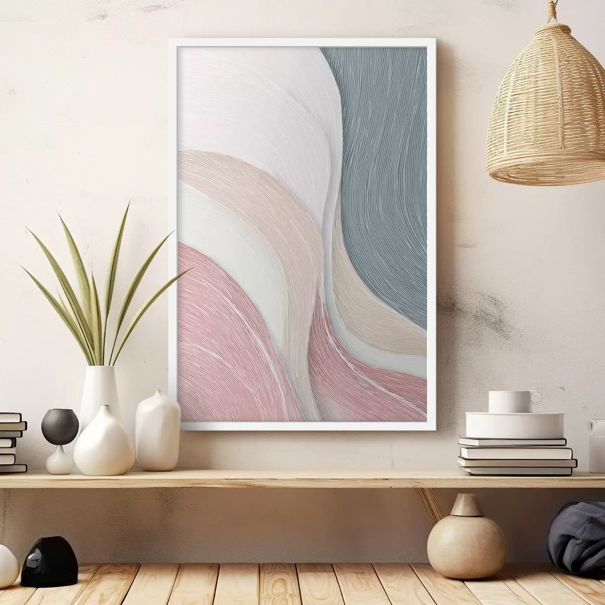 Plakat Jasne abstrakcyjne fale w odcieniach jasnoróżowego i szaro-białego f46153