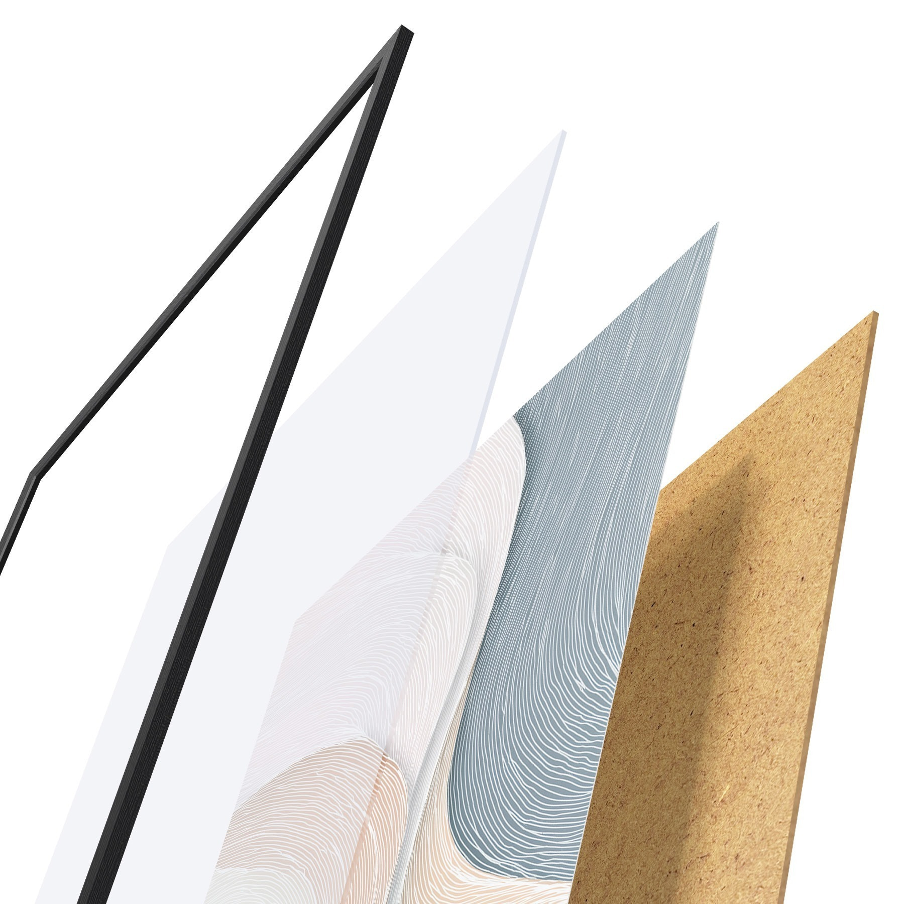 Plakat składa się z ramy, pleksi, wydrukowanego obrazu i podkładu z płyty wiórowej. Plakat można natychmiast zawiesić na ścianie dzięki uchwytom z tyłu.
