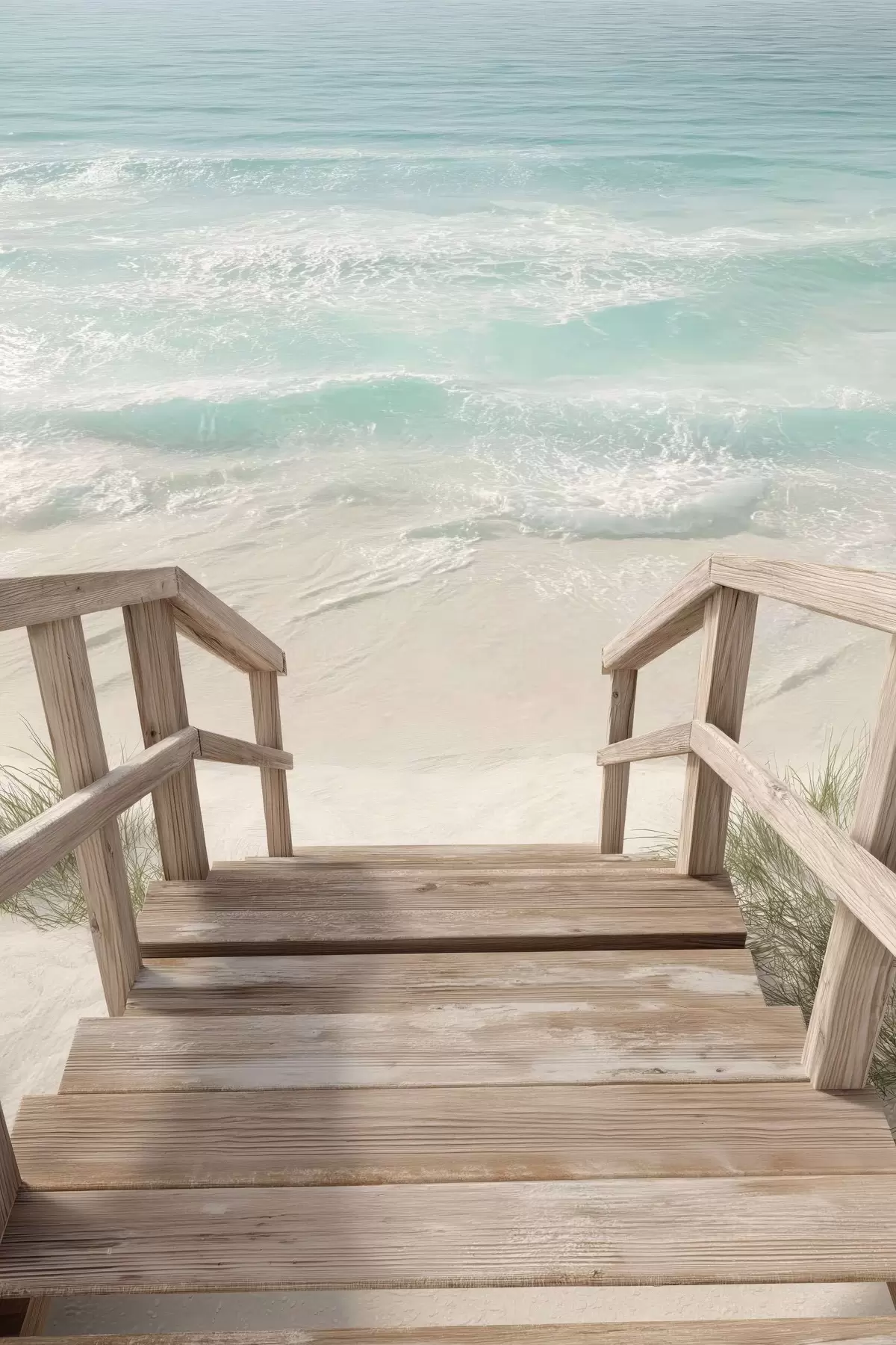 Poster Drewniane schody prowadzące do turkusowej plaży Nr f46163