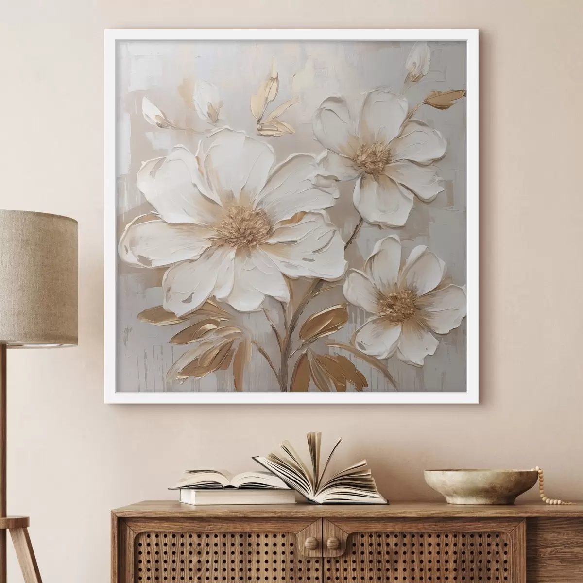 Poster Teksturowane kwiaty na jasnym tle w ciepłych odcieniach Nr f46166