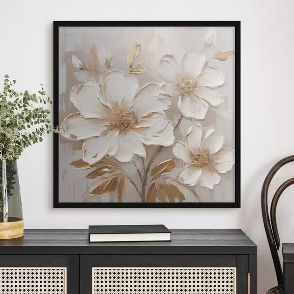 Plakat Teksturowane kwiaty na jasnym tle w ciepłych odcieniach f46166