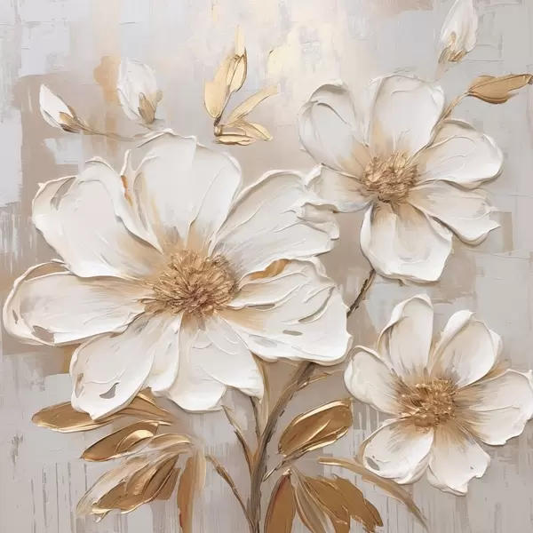 Poster Teksturowane kwiaty na jasnym tle w ciepłych odcieniach Nr f46166