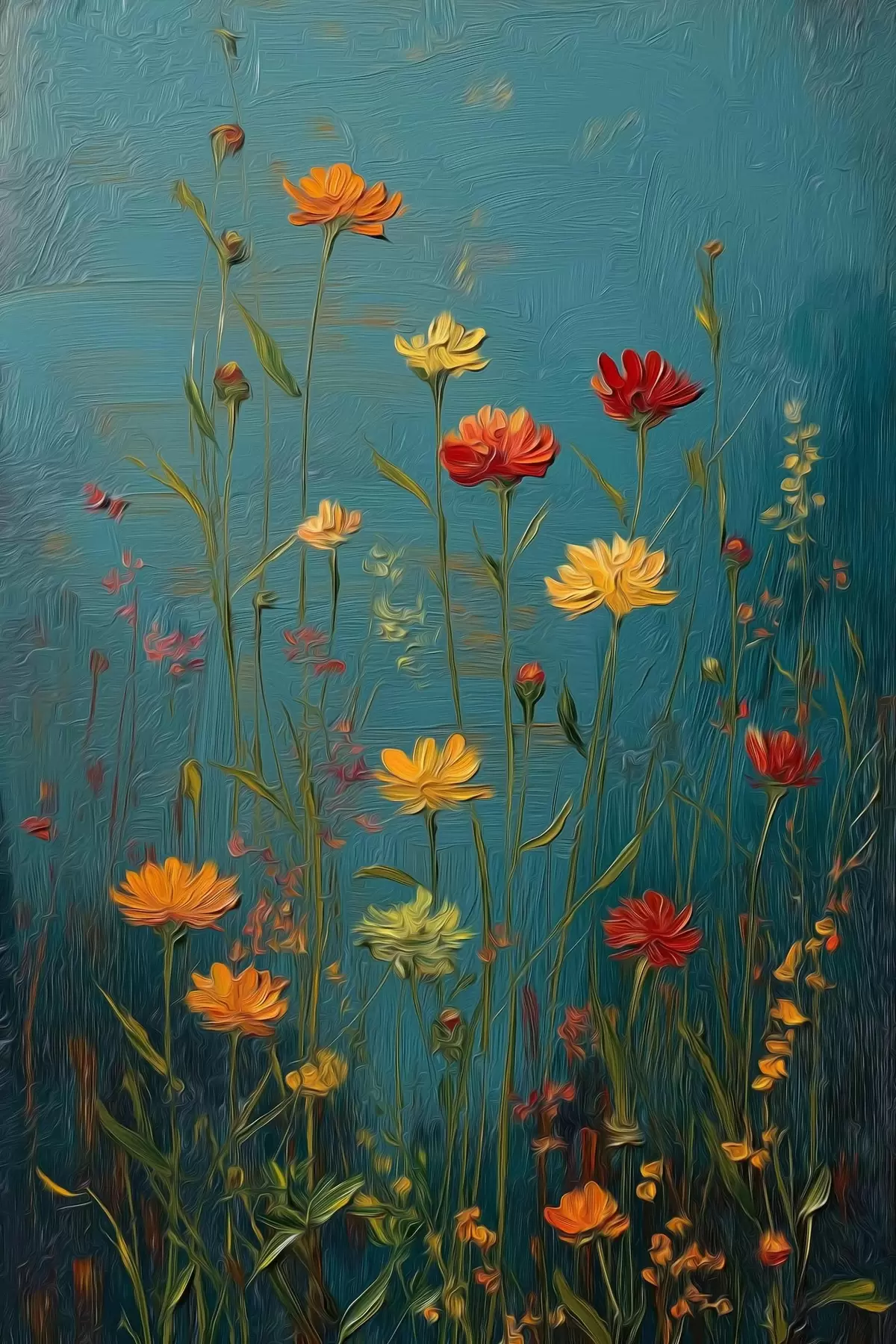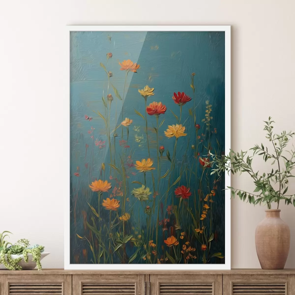 Poster Kwiaty polne na ciemnym turkusowym tle Nr f46169