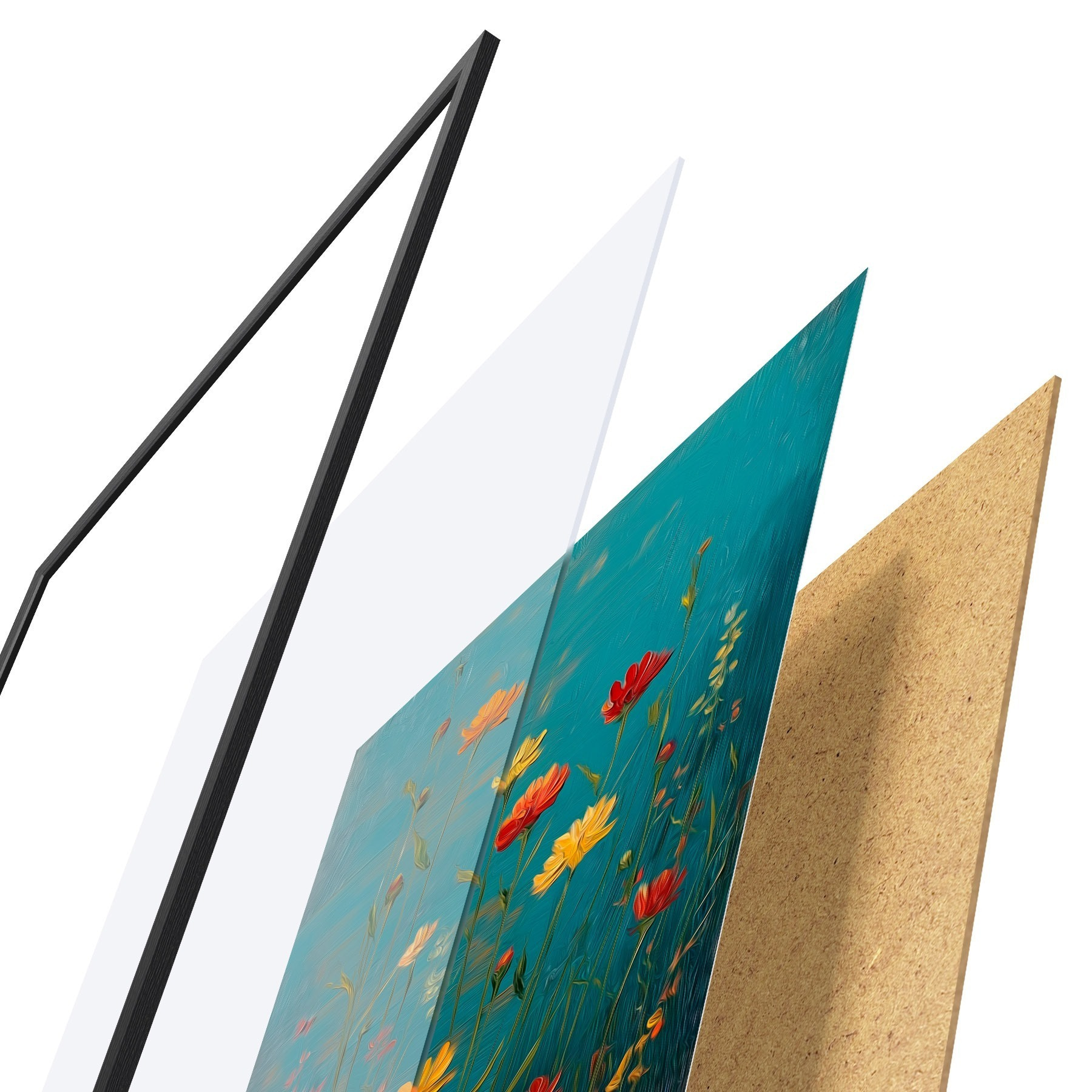 Plakat składa się z ramy, pleksi, wydrukowanego obrazu i podkładu z płyty wiórowej. Plakat można natychmiast zawiesić na ścianie dzięki uchwytom z tyłu.