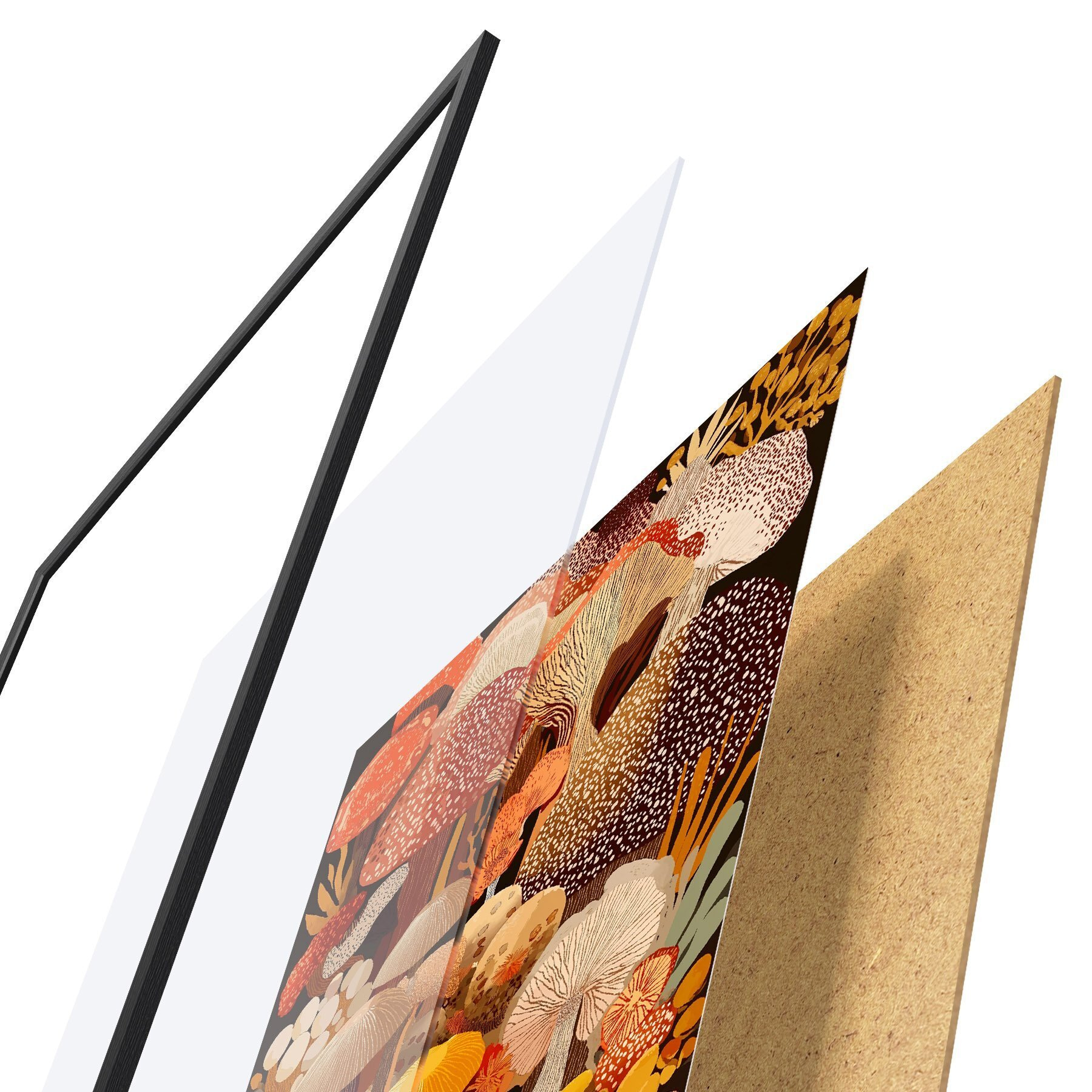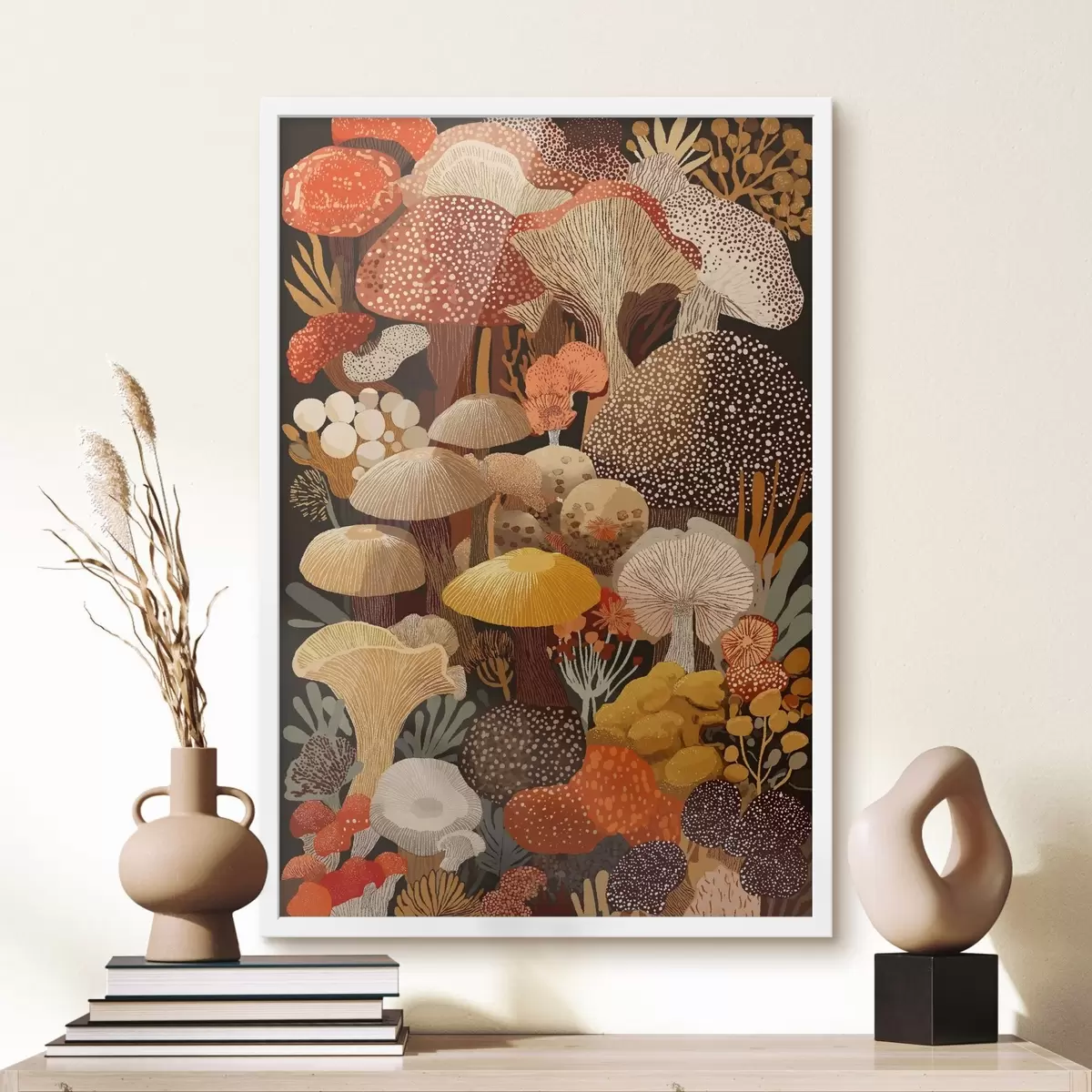 Poster Kompozycja różnych grzybów leśnych w ciepłych barwach Nr f46170