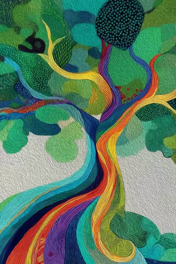 Poster Drzewo z tęczowymi gałęziami na zielonym tle Nr f46173