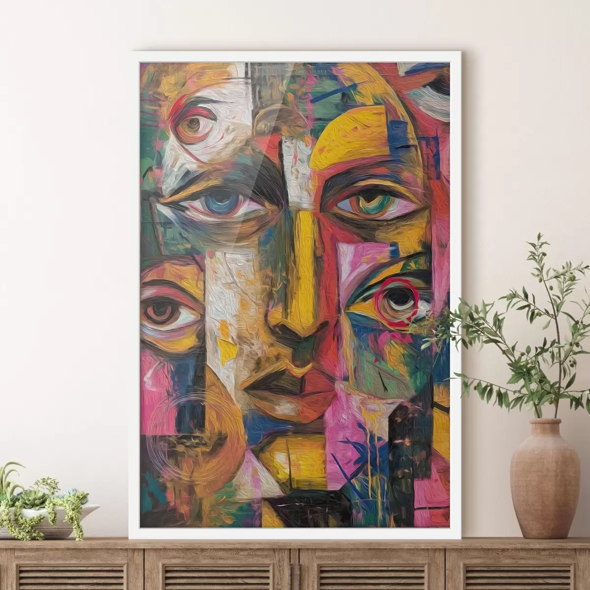 Poster Abstrakcyjna twarz z jasnymi geometrycznymi kształtami Nr f46175