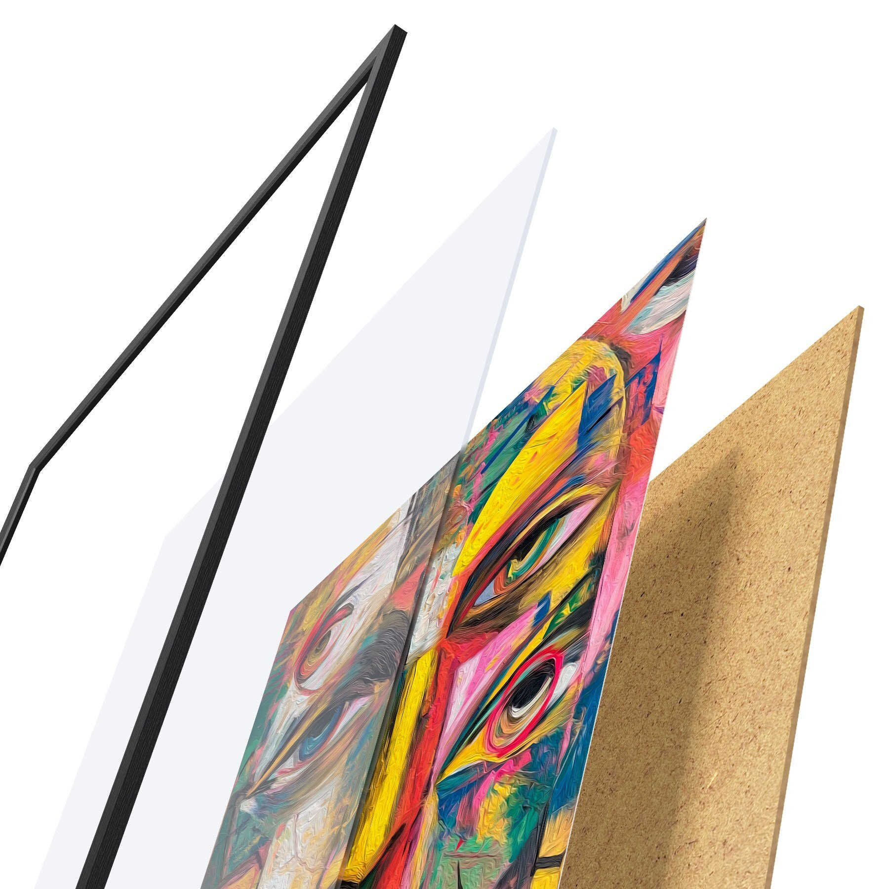 Plakat składa się z ramy, pleksi, wydrukowanego obrazu i podkładu z płyty wiórowej. Plakat można natychmiast zawiesić na ścianie dzięki uchwytom z tyłu.
