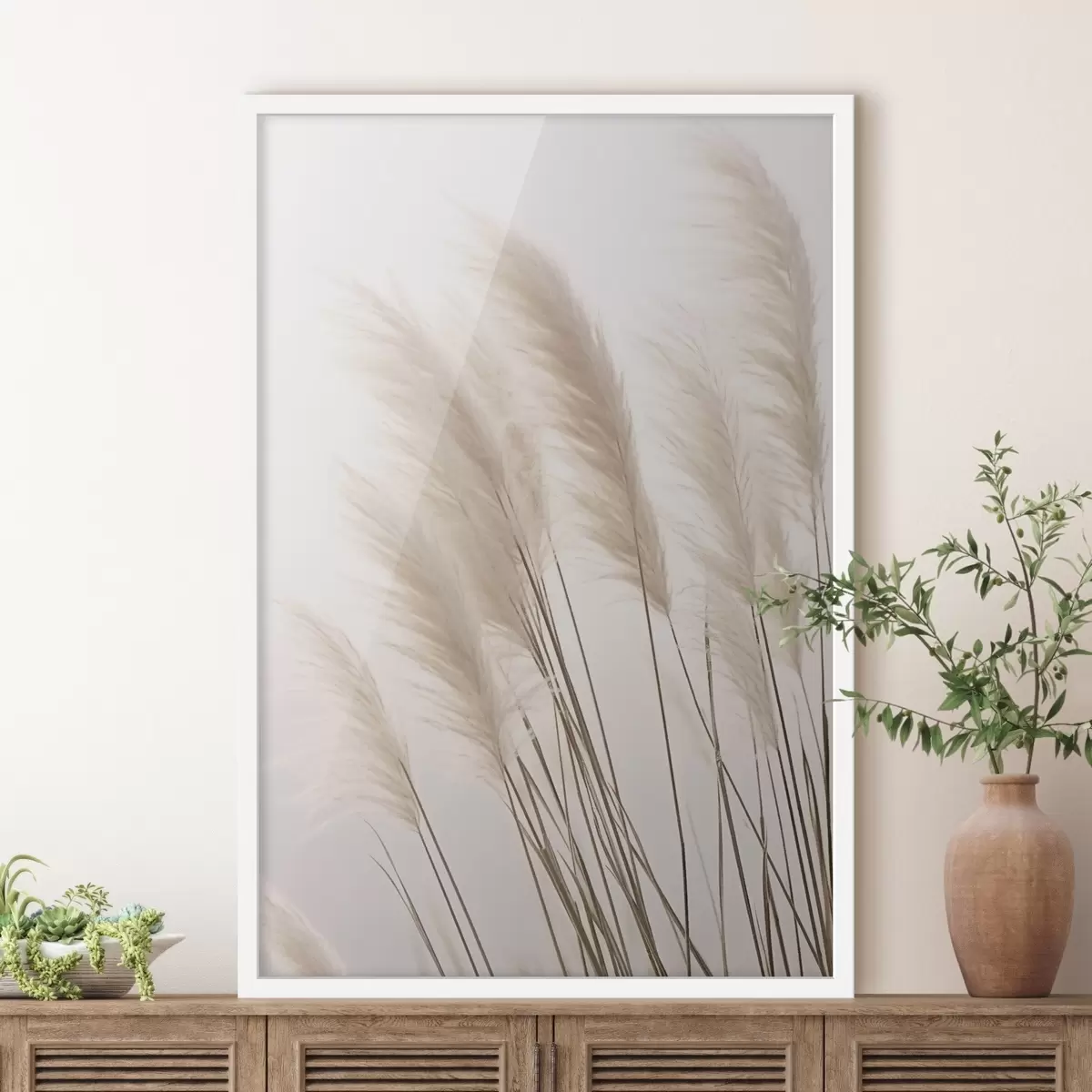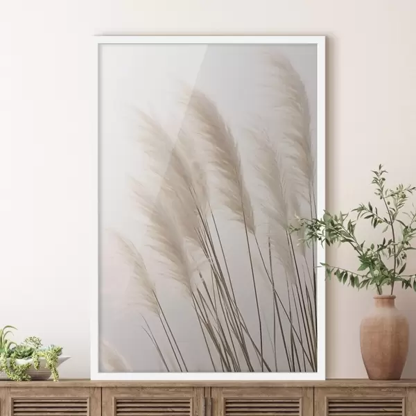 Plakat Jasne trawy z puszystymi wierzchołkami na jasnym tle f46179