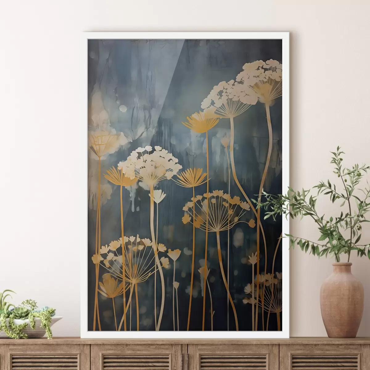 Plakat Stylizowane kwiaty o cienkich łodygach na ciemnym tle f46188