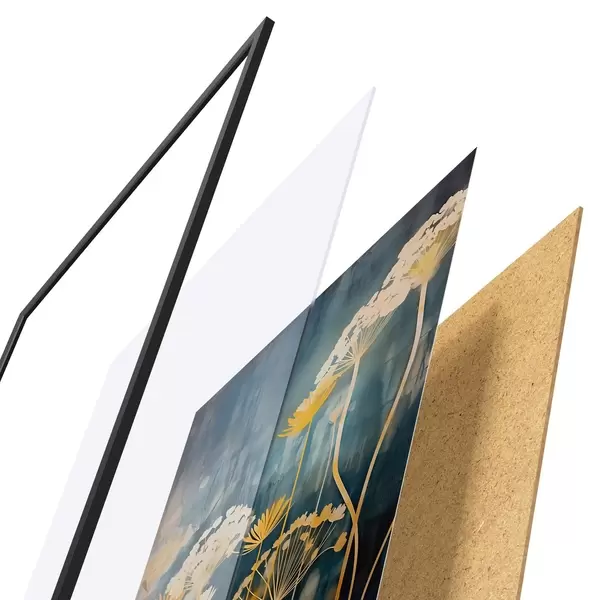 Plakat składa się z ramy, pleksi, wydrukowanego obrazu i podkładu z płyty wiórowej. Plakat można natychmiast zawiesić na ścianie dzięki uchwytom z tyłu.