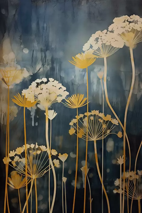 Plakat Stylizowane kwiaty o cienkich łodygach na ciemnym tle f46188