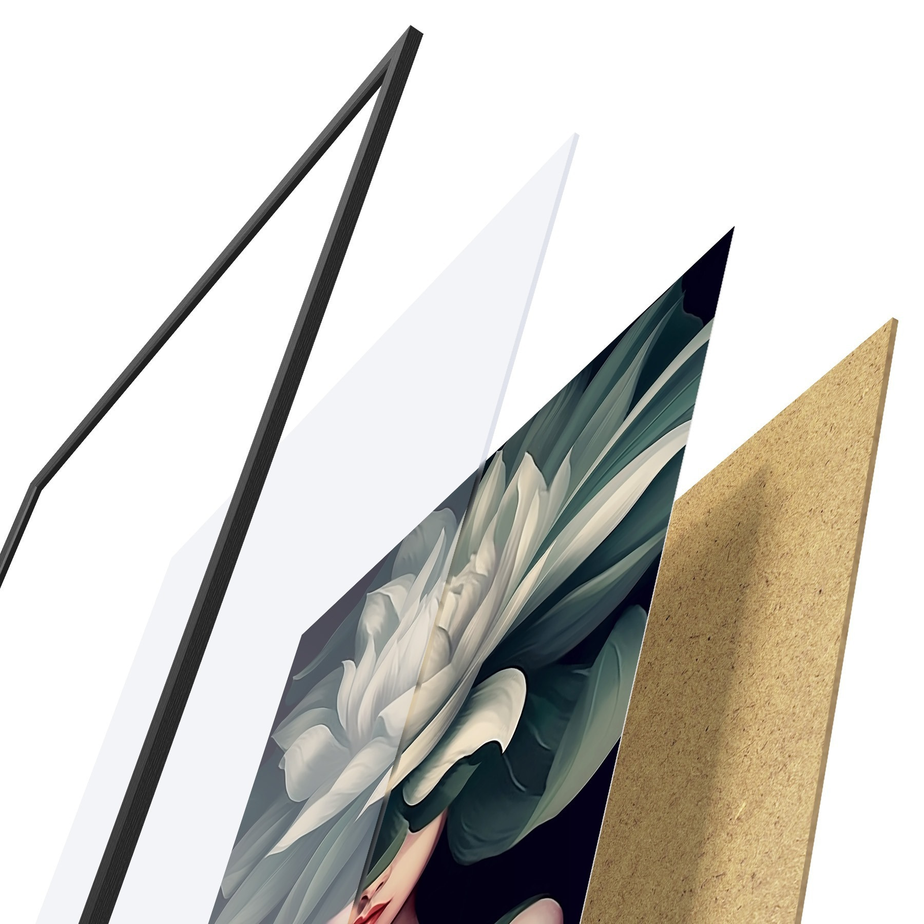 Plakat składa się z ramy, pleksi, wydrukowanego obrazu i podkładu z płyty wiórowej. Plakat można natychmiast zawiesić na ścianie dzięki uchwytom z tyłu.