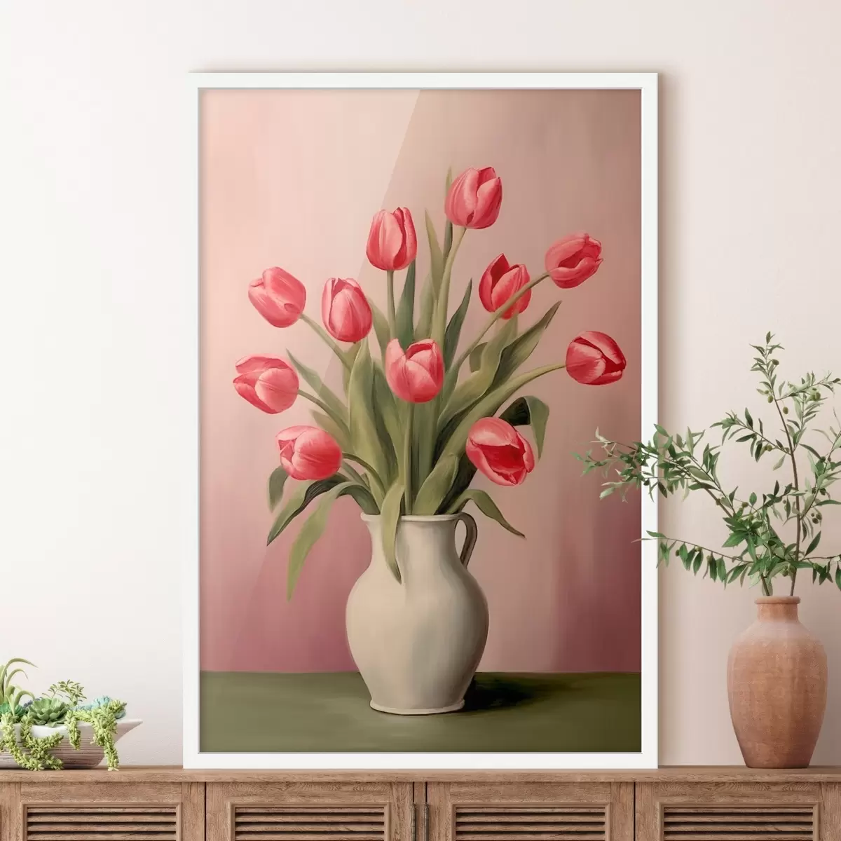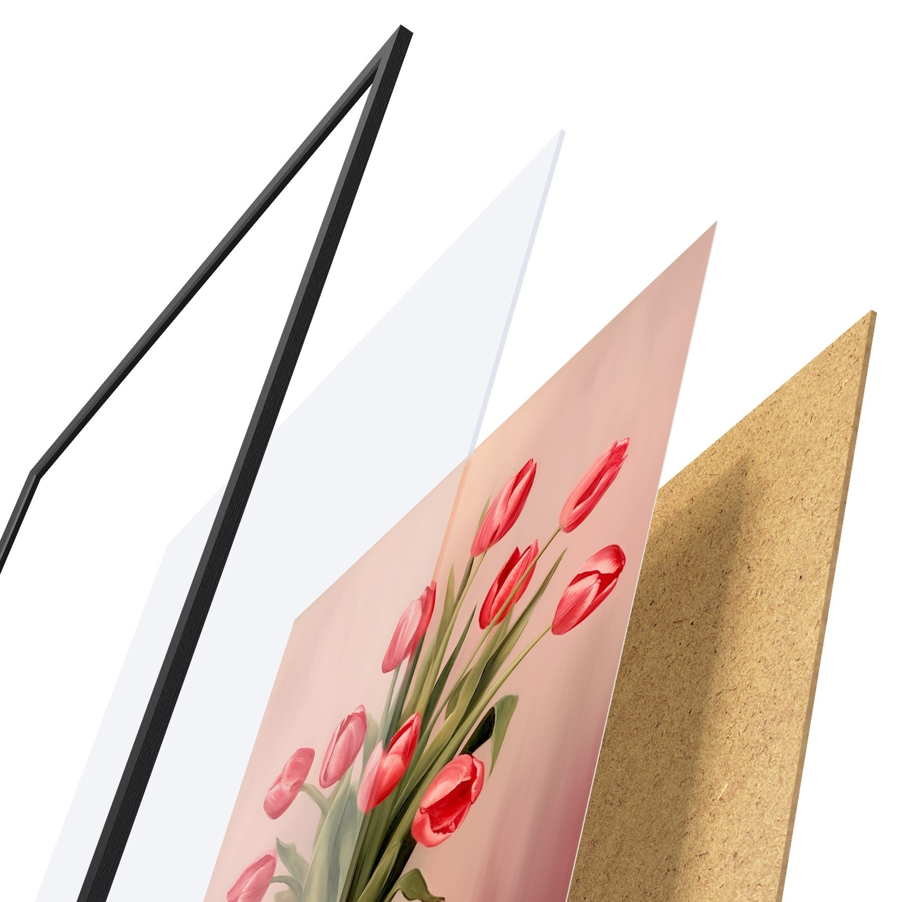 Plakat składa się z ramy, pleksi, wydrukowanego obrazu i podkładu z płyty wiórowej. Plakat można natychmiast zawiesić na ścianie dzięki uchwytom z tyłu.