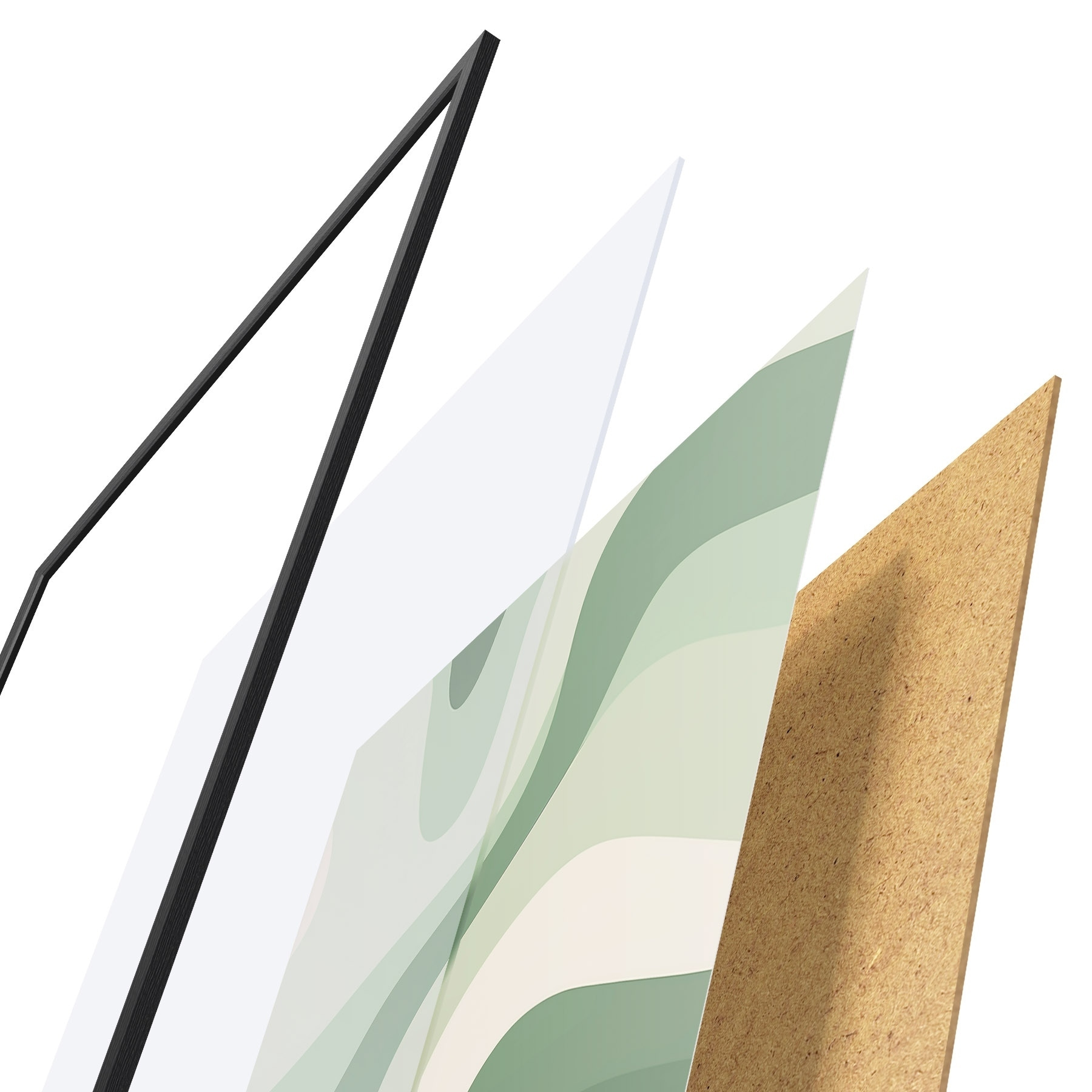 Plakat składa się z ramy, pleksi, wydrukowanego obrazu i podkładu z płyty wiórowej. Plakat można natychmiast zawiesić na ścianie dzięki uchwytom z tyłu.