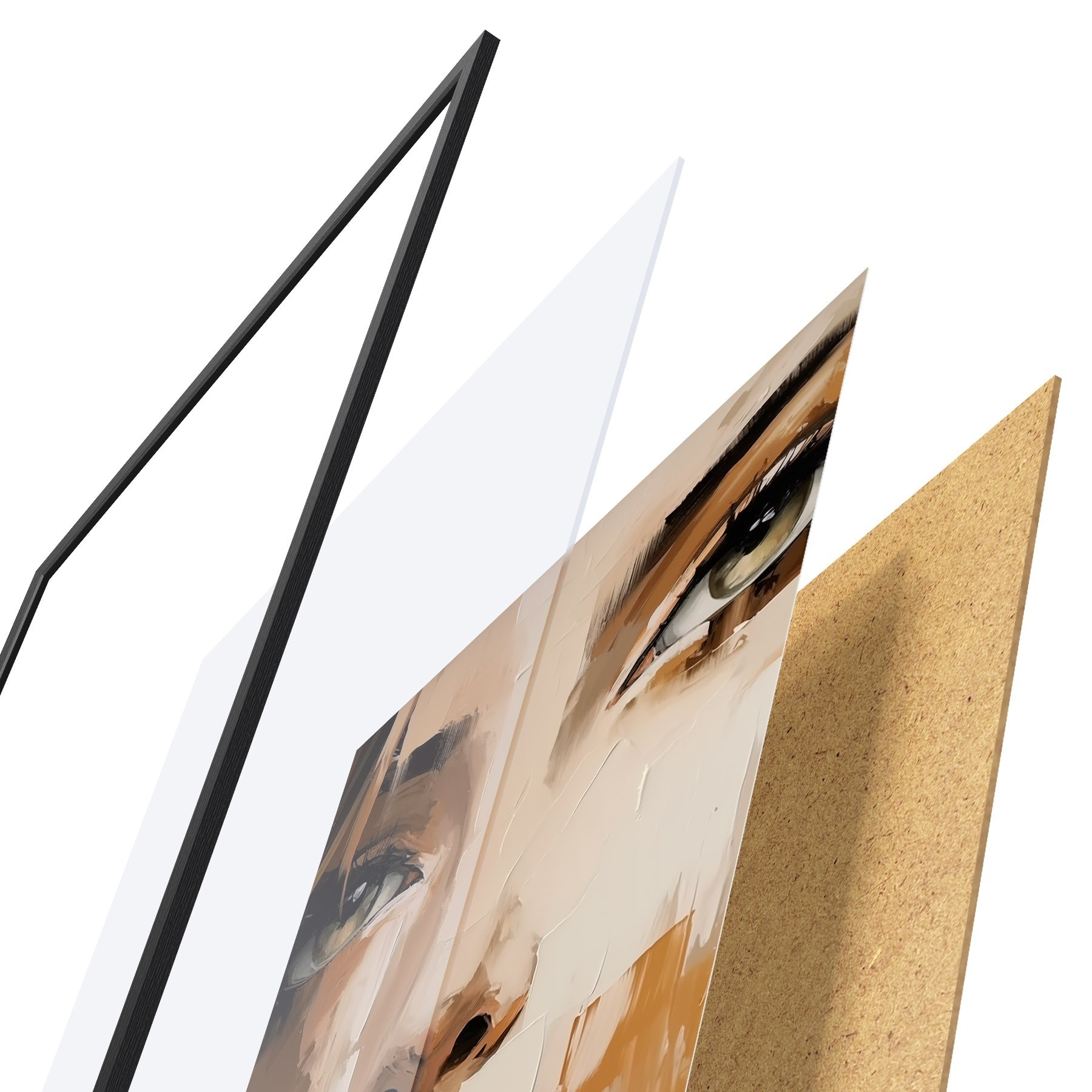 Plakat składa się z ramy, pleksi, wydrukowanego obrazu i podkładu z płyty wiórowej. Plakat można natychmiast zawiesić na ścianie dzięki uchwytom z tyłu.