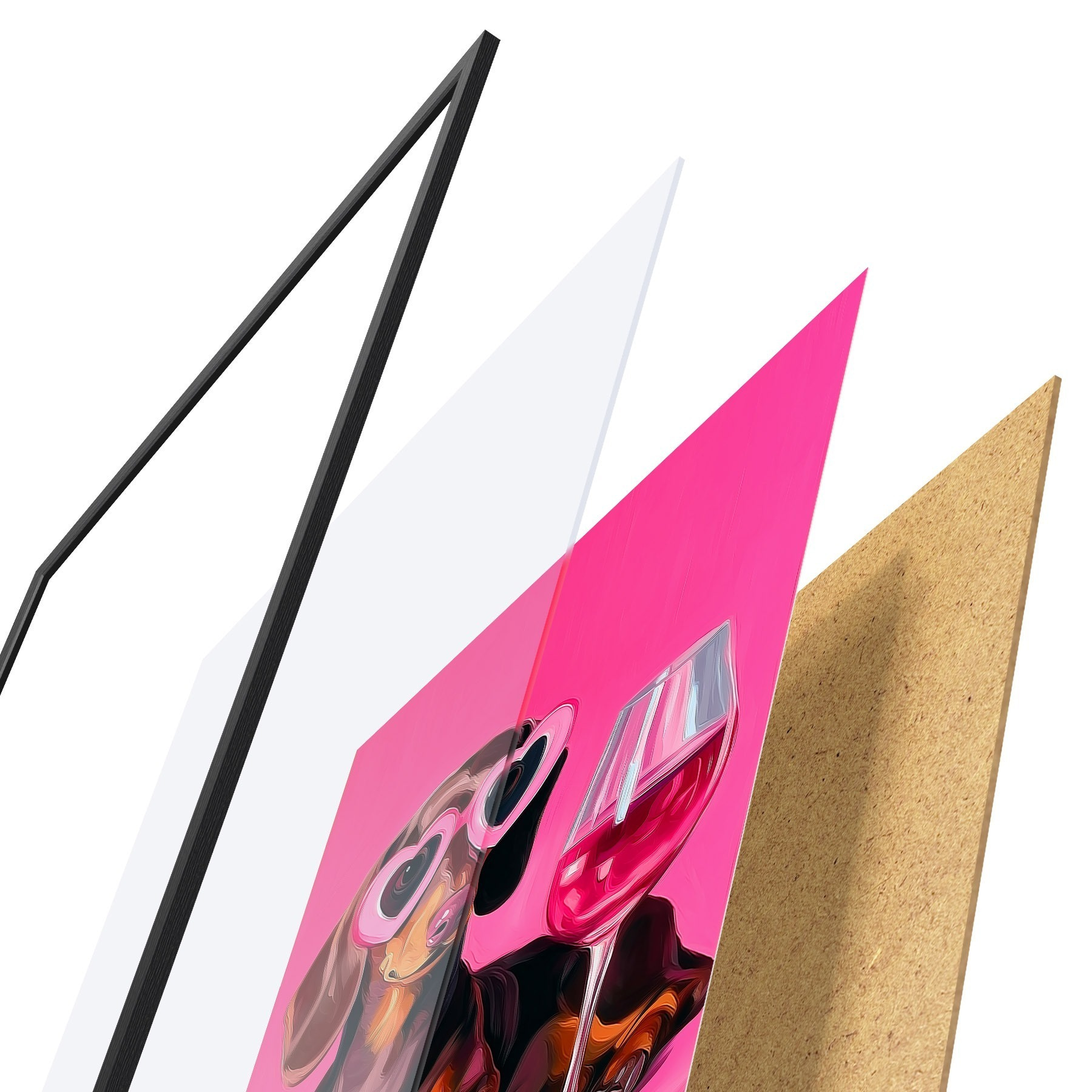 Plakat składa się z ramy, pleksi, wydrukowanego obrazu i podkładu z płyty wiórowej. Plakat można natychmiast zawiesić na ścianie dzięki uchwytom z tyłu.