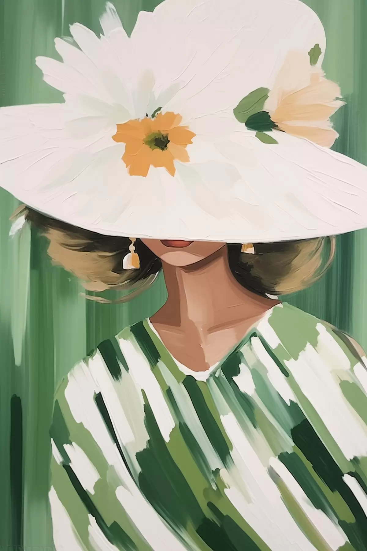 Poster Kobieta w kapeluszu i z kwiatami Nr f46240