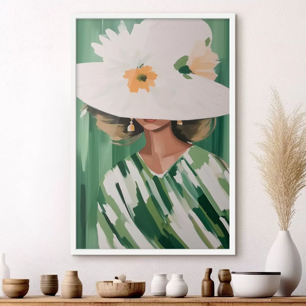 Plakat Kobieta w kapeluszu i z kwiatami f46240
