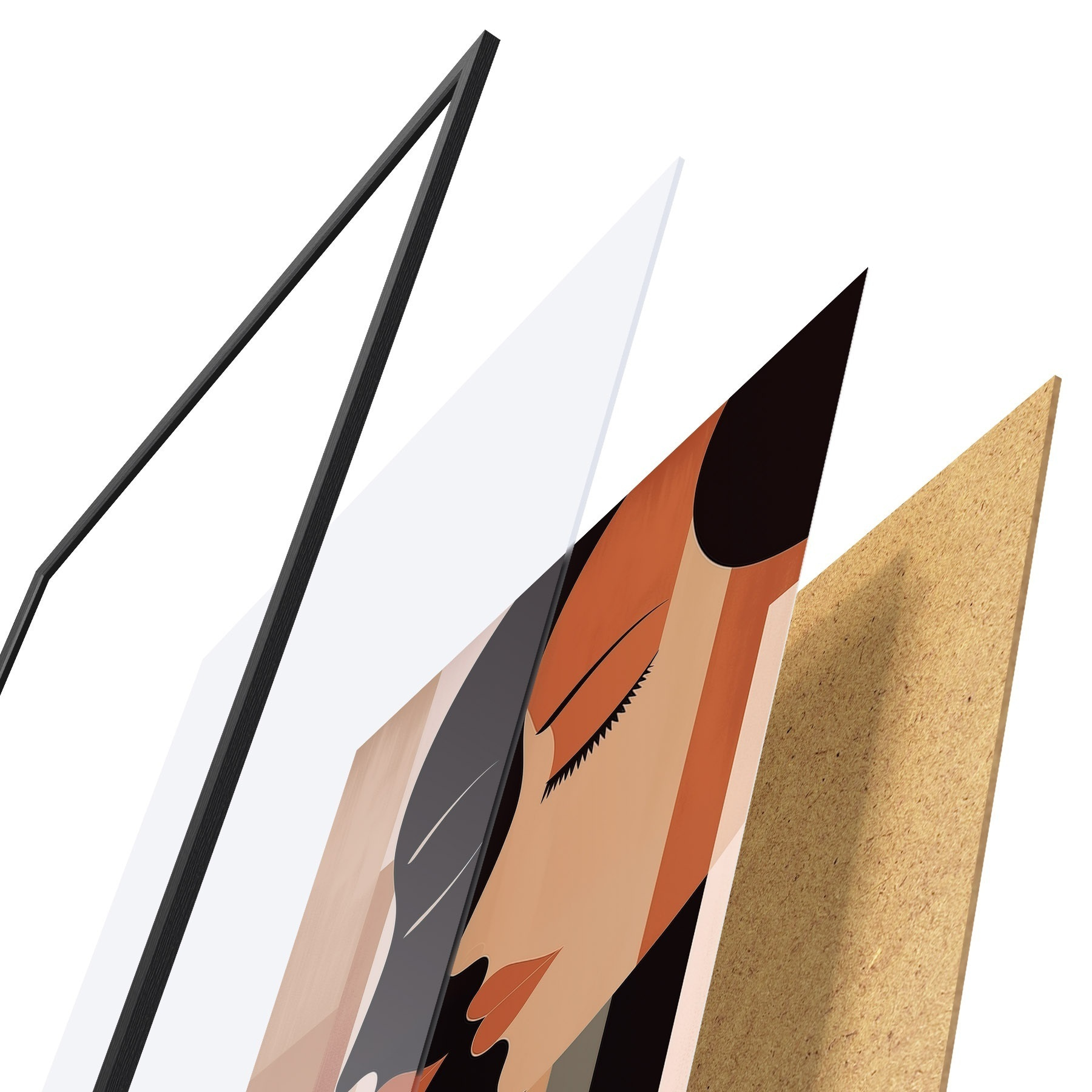 Plakat składa się z ramy, pleksi, wydrukowanego obrazu i podkładu z płyty wiórowej. Plakat można natychmiast zawiesić na ścianie dzięki uchwytom z tyłu.