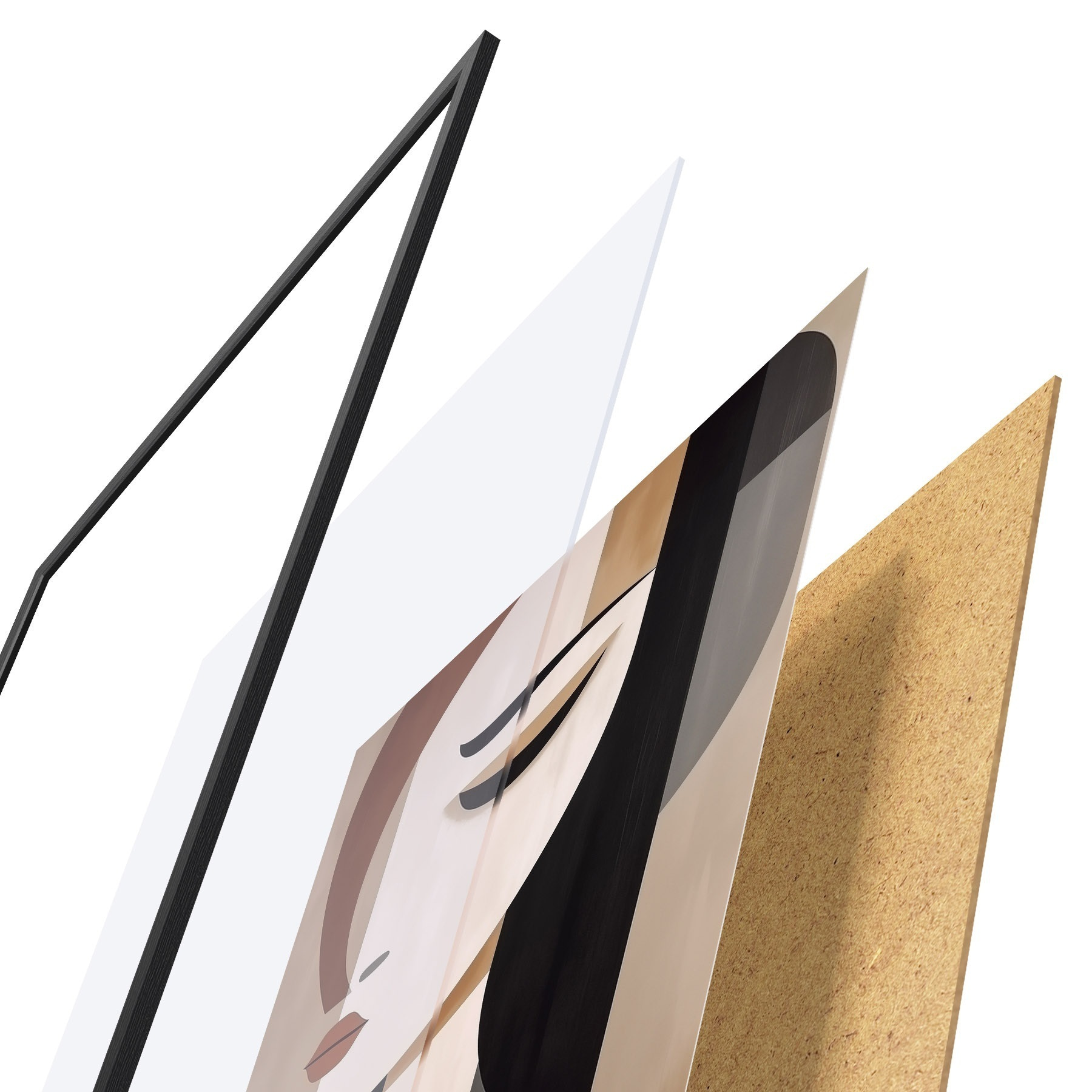 Plakat składa się z ramy, pleksi, wydrukowanego obrazu i podkładu z płyty wiórowej. Plakat można natychmiast zawiesić na ścianie dzięki uchwytom z tyłu.