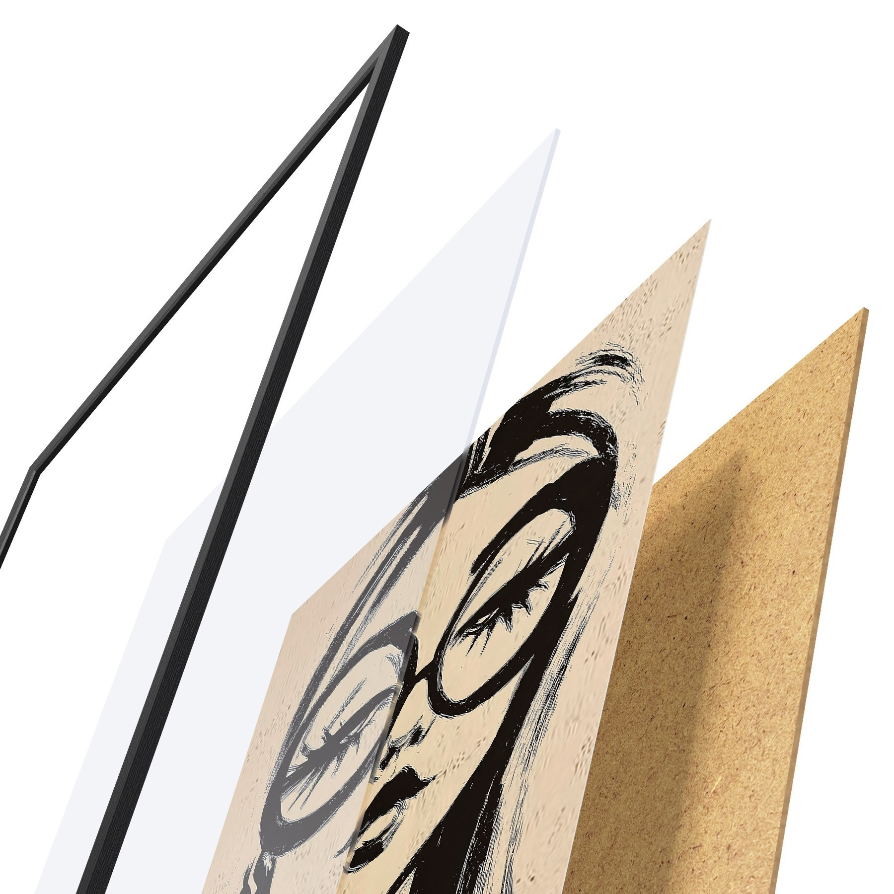 Plakat składa się z ramy, pleksi, wydrukowanego obrazu i podkładu z płyty wiórowej. Plakat można natychmiast zawiesić na ścianie dzięki uchwytom z tyłu.