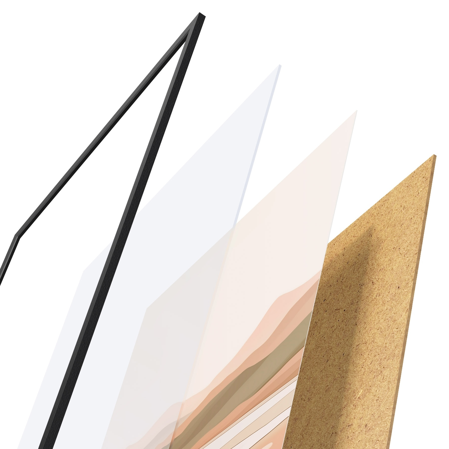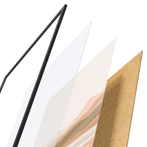 Plakat składa się z ramy, pleksi, wydrukowanego obrazu i podkładu z płyty wiórowej. Plakat można natychmiast zawiesić na ścianie dzięki uchwytom z tyłu.