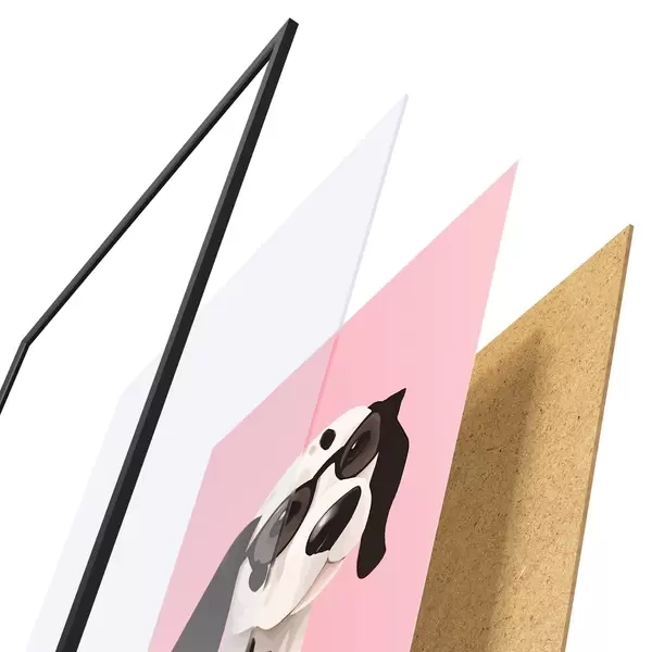 Plakat składa się z ramy, pleksi, wydrukowanego obrazu i podkładu z płyty wiórowej. Plakat można natychmiast zawiesić na ścianie dzięki uchwytom z tyłu.