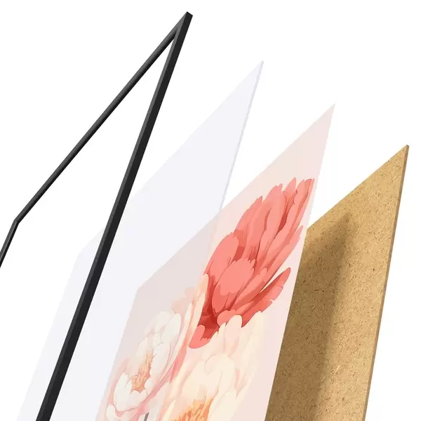 Plakat składa się z ramy, pleksi, wydrukowanego obrazu i podkładu z płyty wiórowej. Plakat można natychmiast zawiesić na ścianie dzięki uchwytom z tyłu.