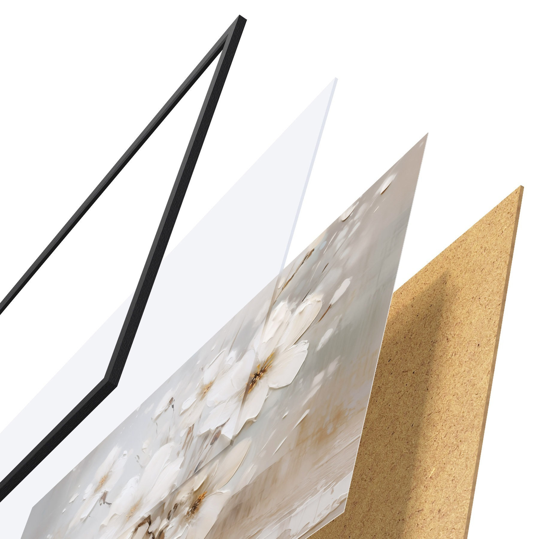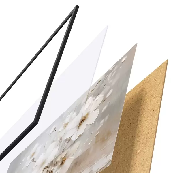 Plakat składa się z ramy, pleksi, wydrukowanego obrazu i podkładu z płyty wiórowej. Plakat można natychmiast zawiesić na ścianie dzięki uchwytom z tyłu.