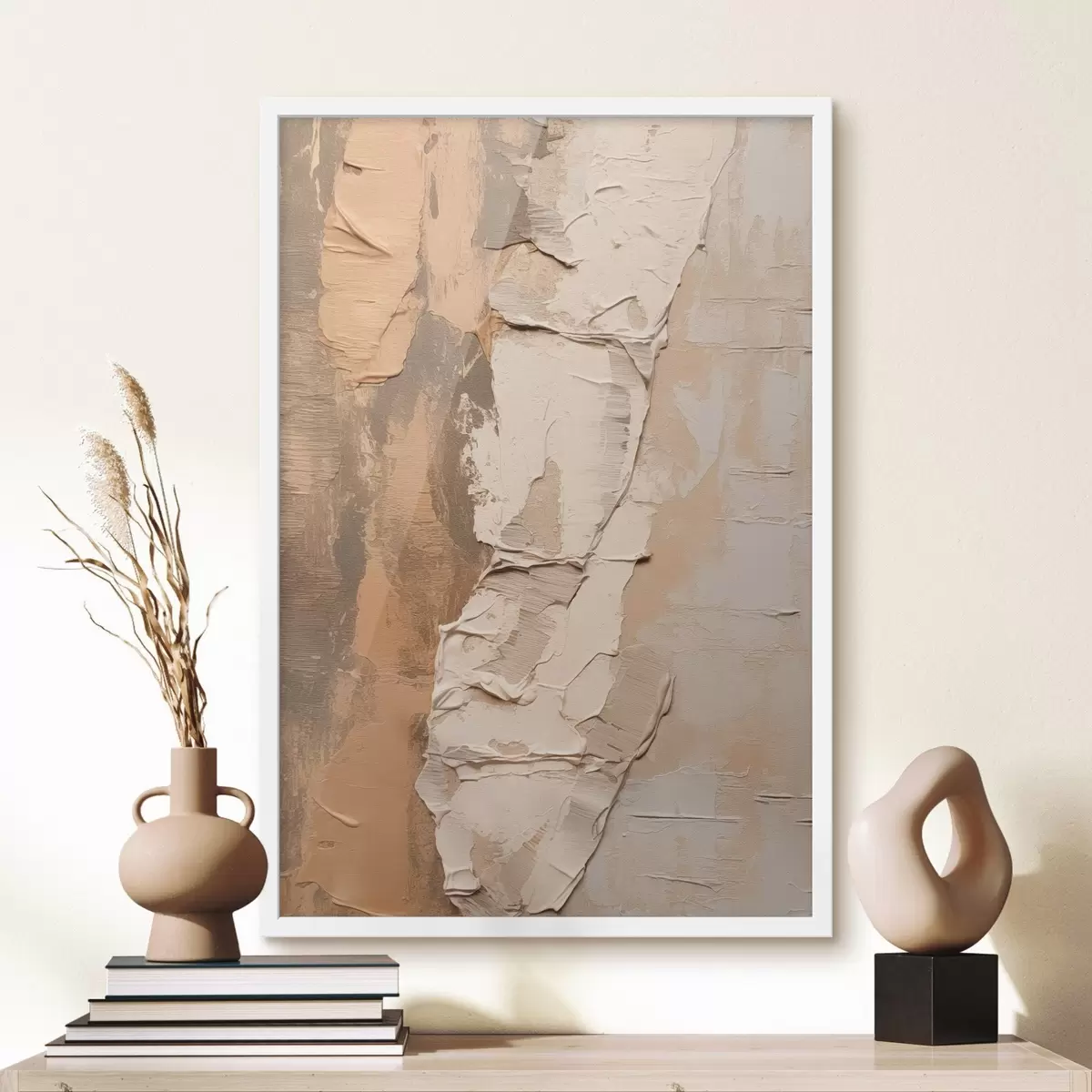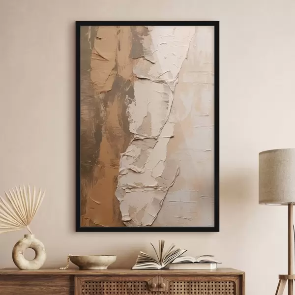 Plakat Malarstwo abstrakcyjne z grubymi pociągnięciami pędzla, beżowymi i brązowymi odcieniami, teksturowaną powierzchnią, neutralną paletą kolorów f46272