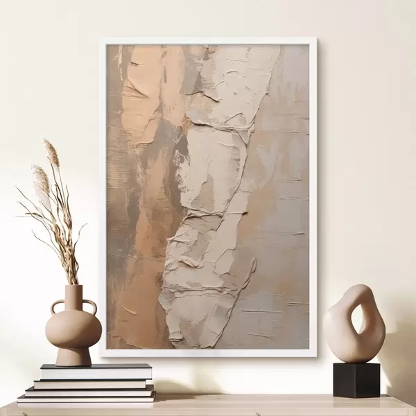 Poster Malarstwo abstrakcyjne z grubymi pociągnięciami pędzla, beżowymi i brązowymi odcieniami, teksturowaną powierzchnią, neutralną paletą kolorów Nr f46272