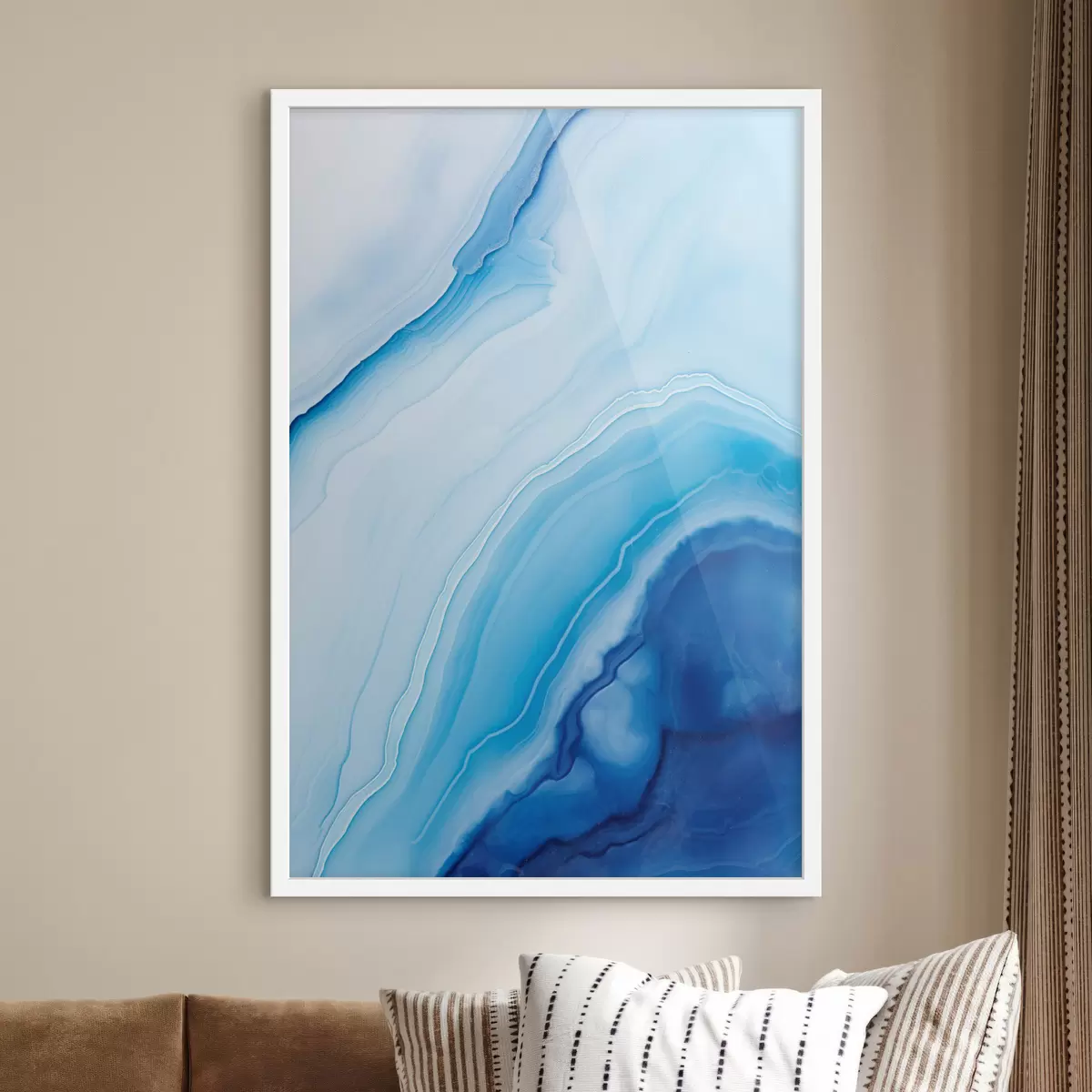Plakat Abstrakcyjny wzór z niebieskiego i białego agatu, wirujące linie i gradienty, gładka faktura, sztuka nowoczesna, minimalistyczny f46290