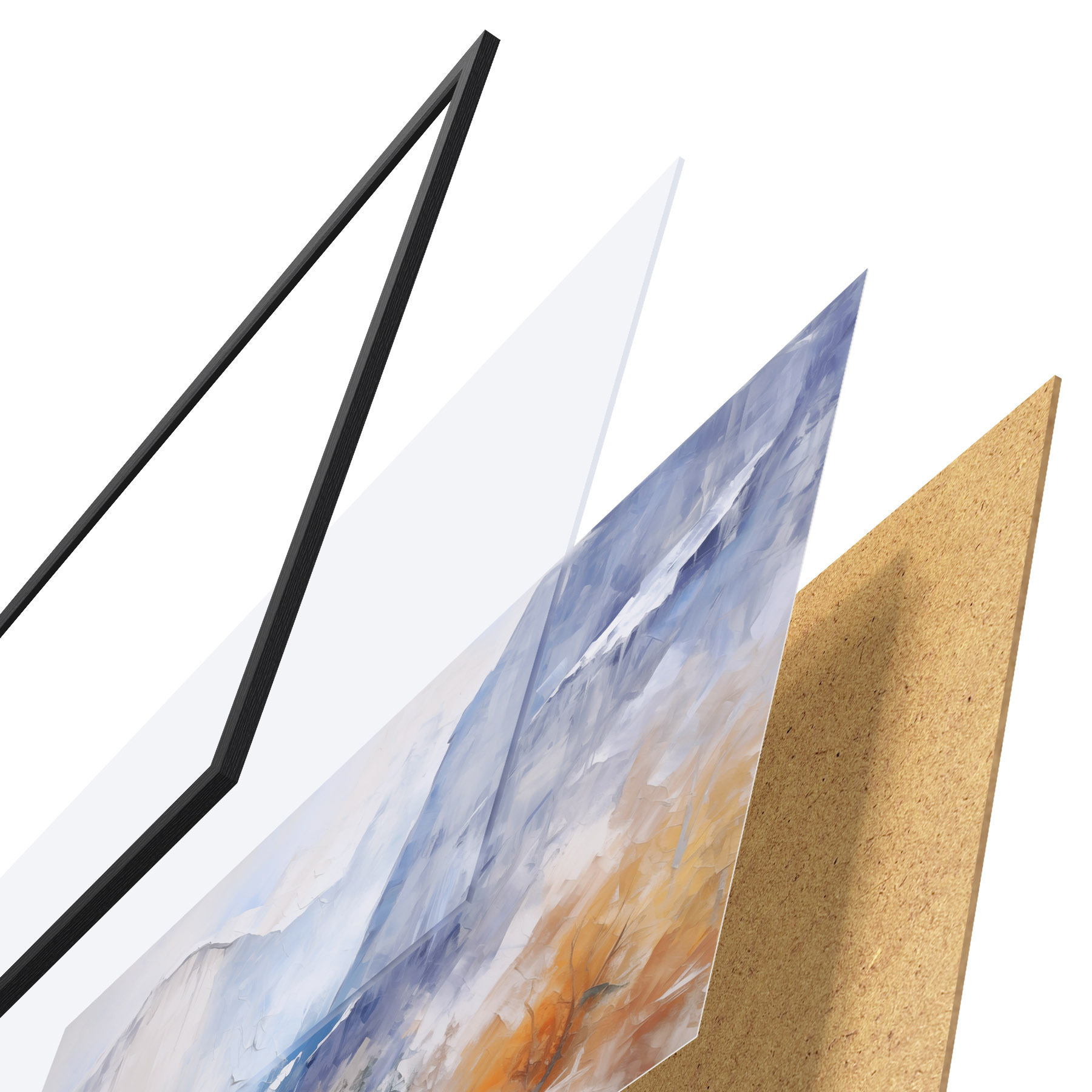 Plakat składa się z ramy, pleksi, wydrukowanego obrazu i podkładu z płyty wiórowej. Plakat można natychmiast zawiesić na ścianie dzięki uchwytom z tyłu.