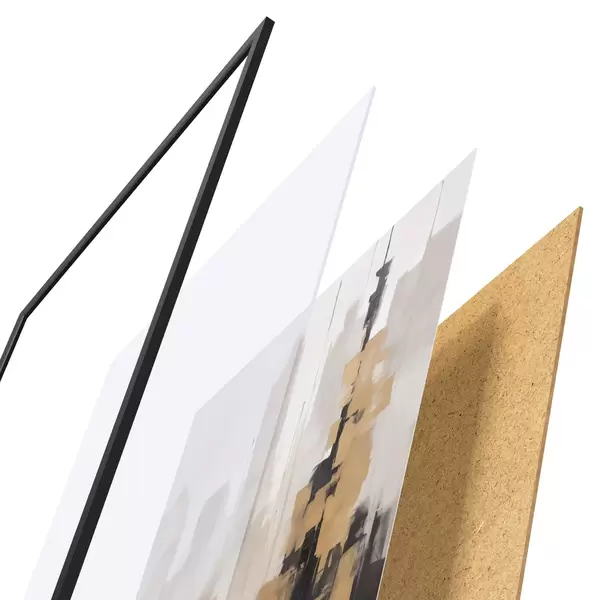 Plakat składa się z ramy, pleksi, wydrukowanego obrazu i podkładu z płyty wiórowej. Plakat można natychmiast zawiesić na ścianie dzięki uchwytom z tyłu.