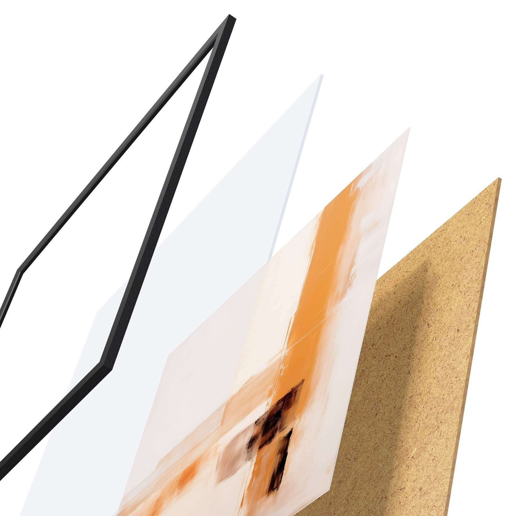 Plakat składa się z ramy, pleksi, wydrukowanego obrazu i podkładu z płyty wiórowej. Plakat można natychmiast zawiesić na ścianie dzięki uchwytom z tyłu.