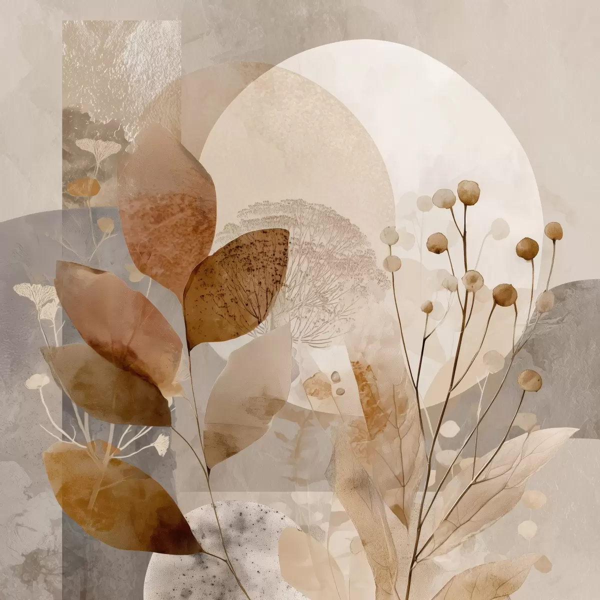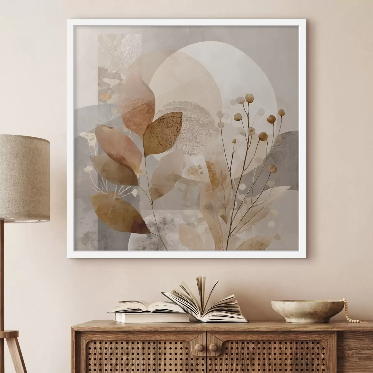 Plakat Kwiatowy wzór w kolorze beżowym i brązowym f46308