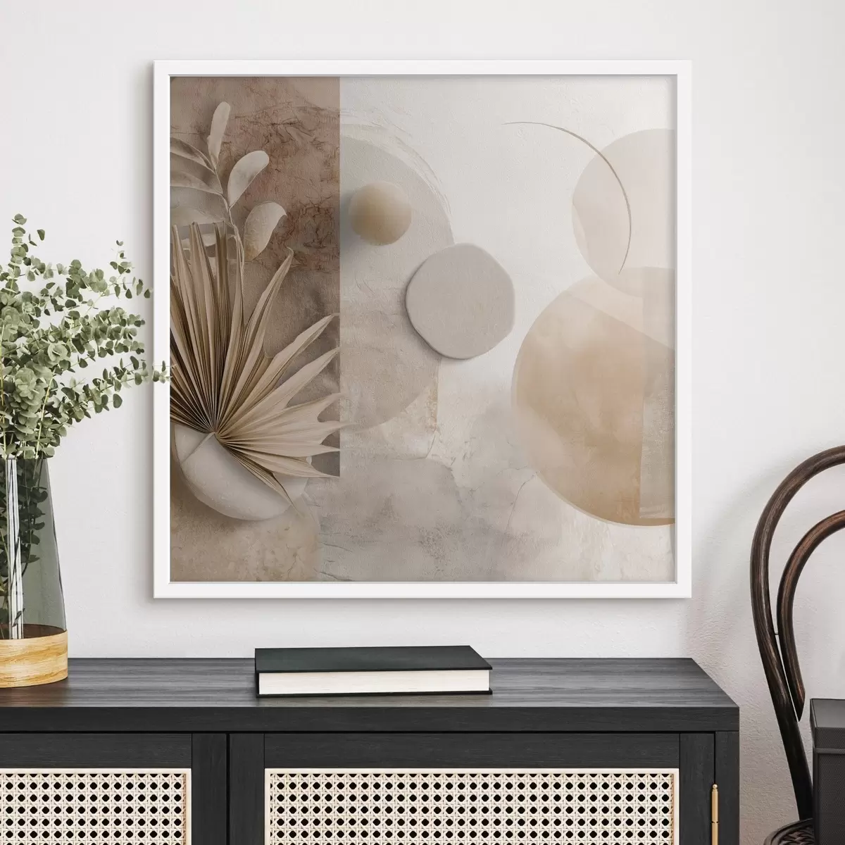 Plakat Suszone liście palmowe i trójwymiarowe koła w odcieniach beżu f46310
