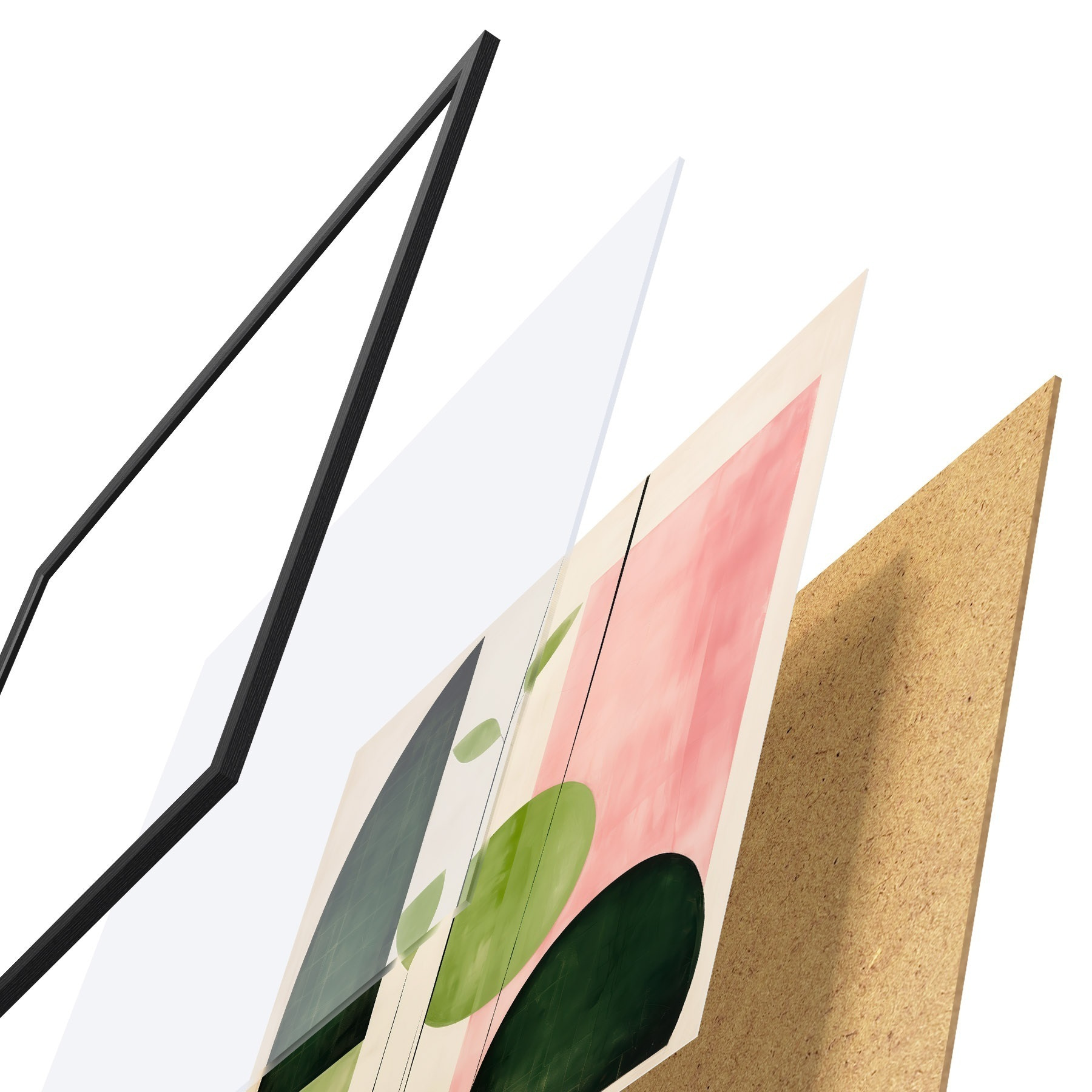 Plakat składa się z ramy, pleksi, wydrukowanego obrazu i podkładu z płyty wiórowej. Plakat można natychmiast zawiesić na ścianie dzięki uchwytom z tyłu.