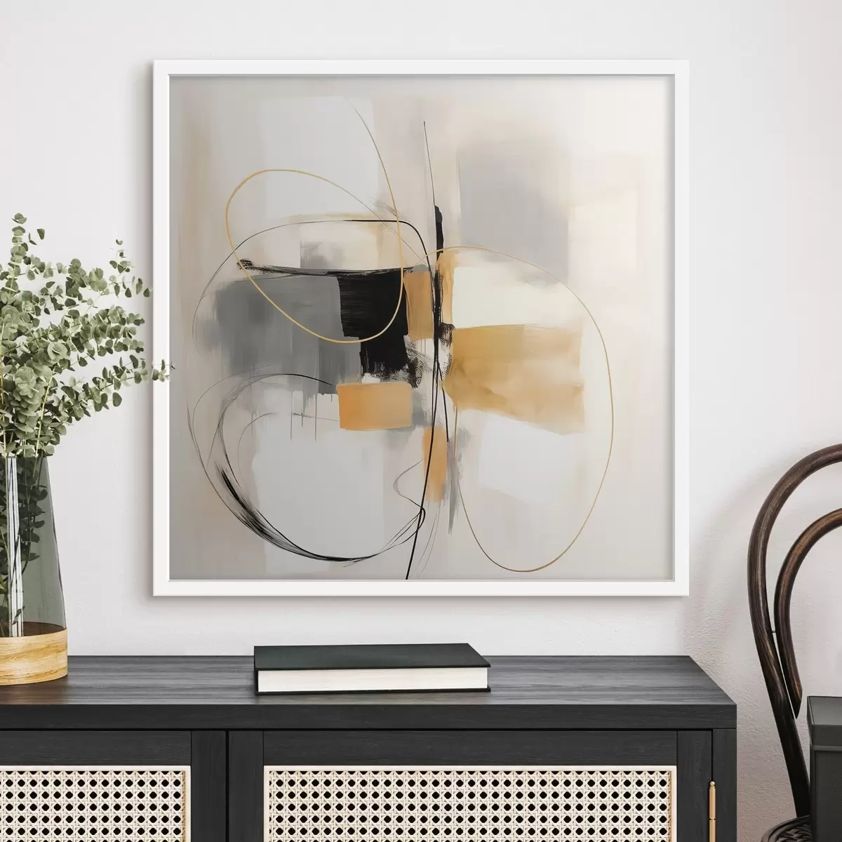 Plakat składa się z ramy, pleksi, wydrukowanego obrazu i podkładu z płyty wiórowej. Plakat można natychmiast zawiesić na ścianie dzięki uchwytom z tyłu.